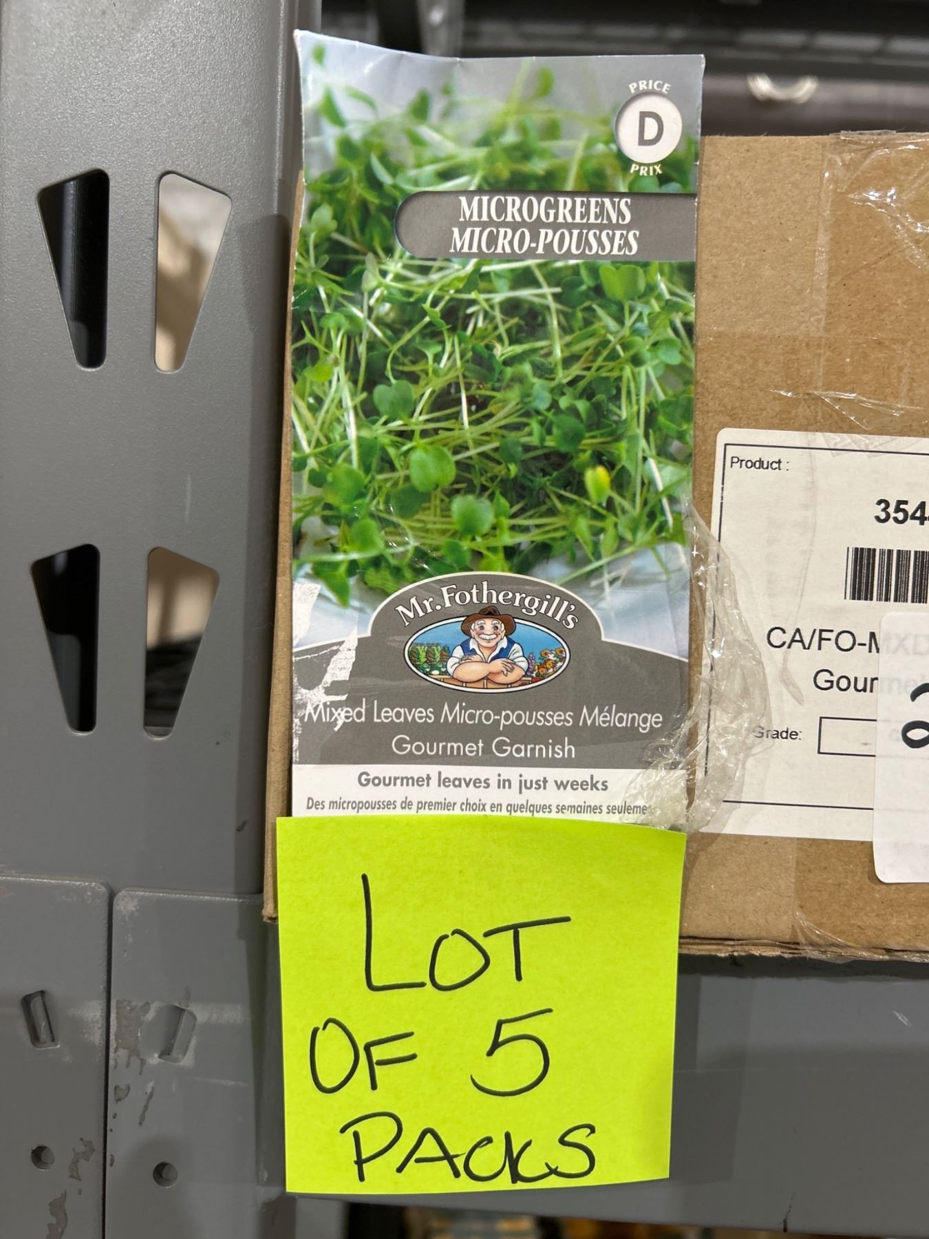 Lot 2439  Microgreens Gourmet Garnish Seeds – 5 Packs of Mr. Fothergillâ€[x=#84