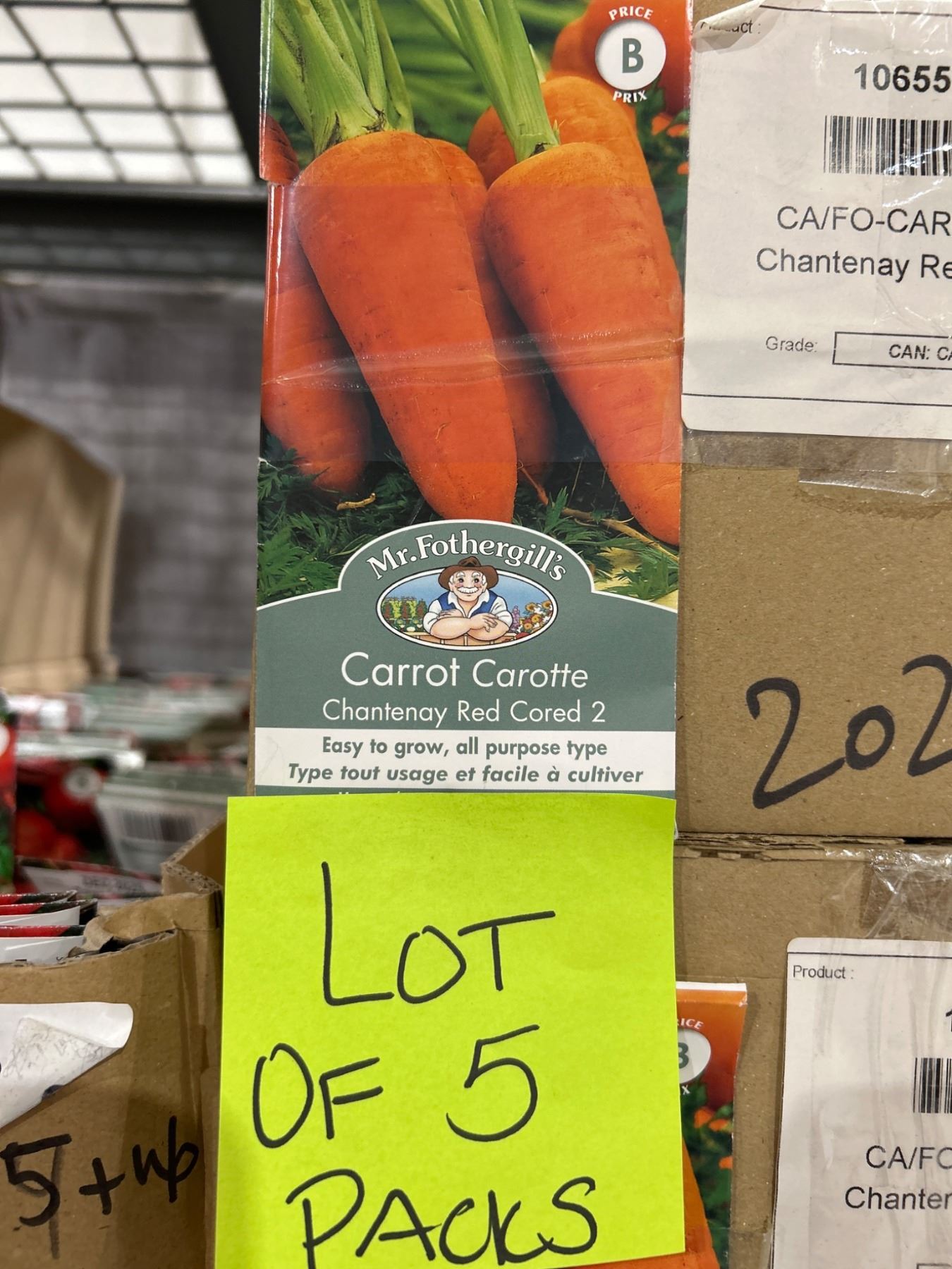 Lot 2482 Chantenay Red Cored 2 Carrot Seeds – 5 Packs of Mr. Fothergillâ€[x=#848