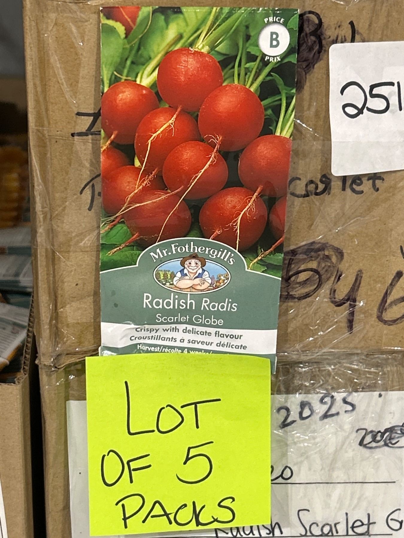Lot 2512 Scarlet Globe Radish Seeds – 5 Packs of Mr. Fothergill’s