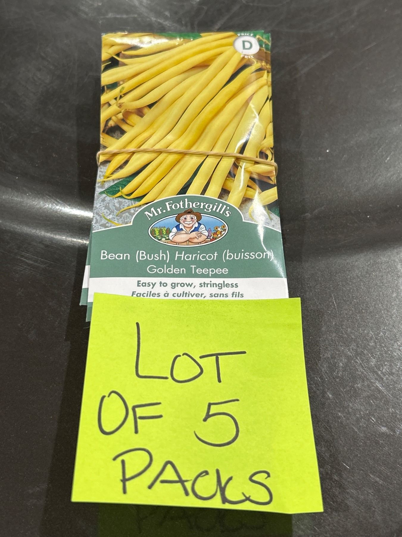 Lot 2557 Golden Teepee Bean Seeds, Bush Variety – 5 Packs of Mr. Fothergillâ€[x=