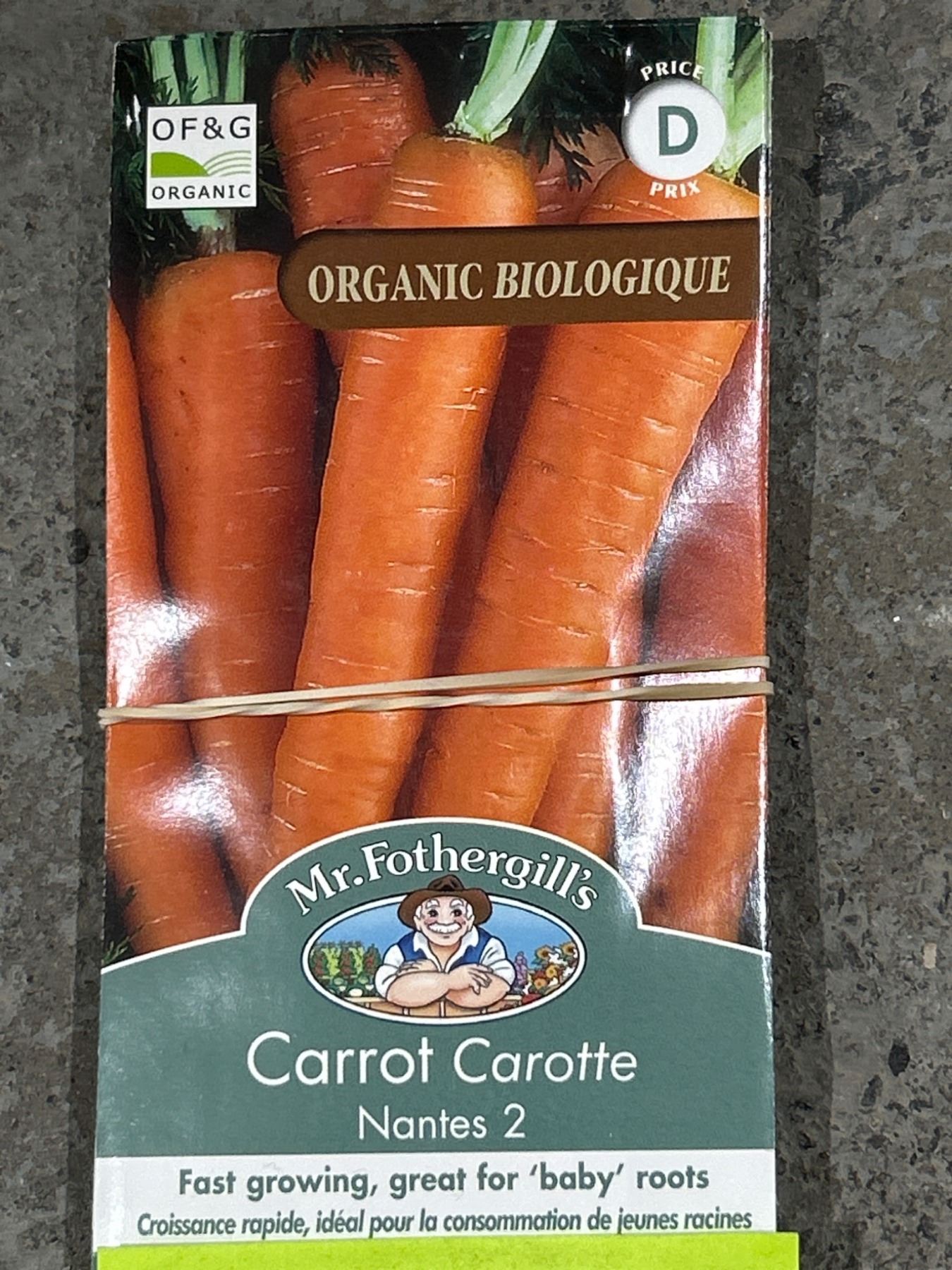 Lot 2585  Carrot Nantes2 Organic Seeds – 5 Packs of Mr. Fothergill’s