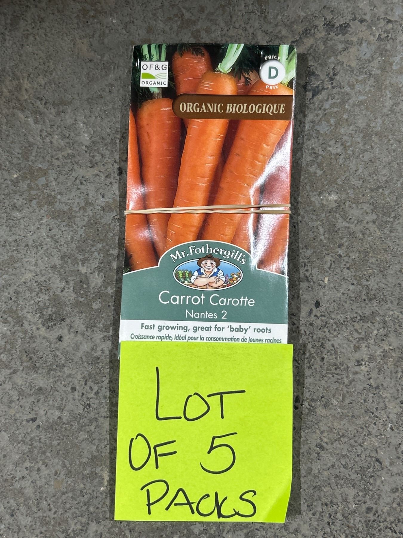 Lot 2586  Carrot Nantes2 Organic Seeds – 5 Packs of Mr. Fothergill’s