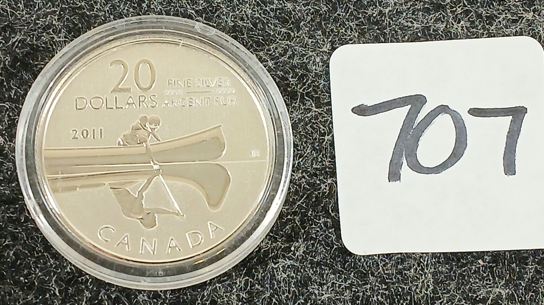 Lot 707 2011 CDN $20 FINE SILVER COIN