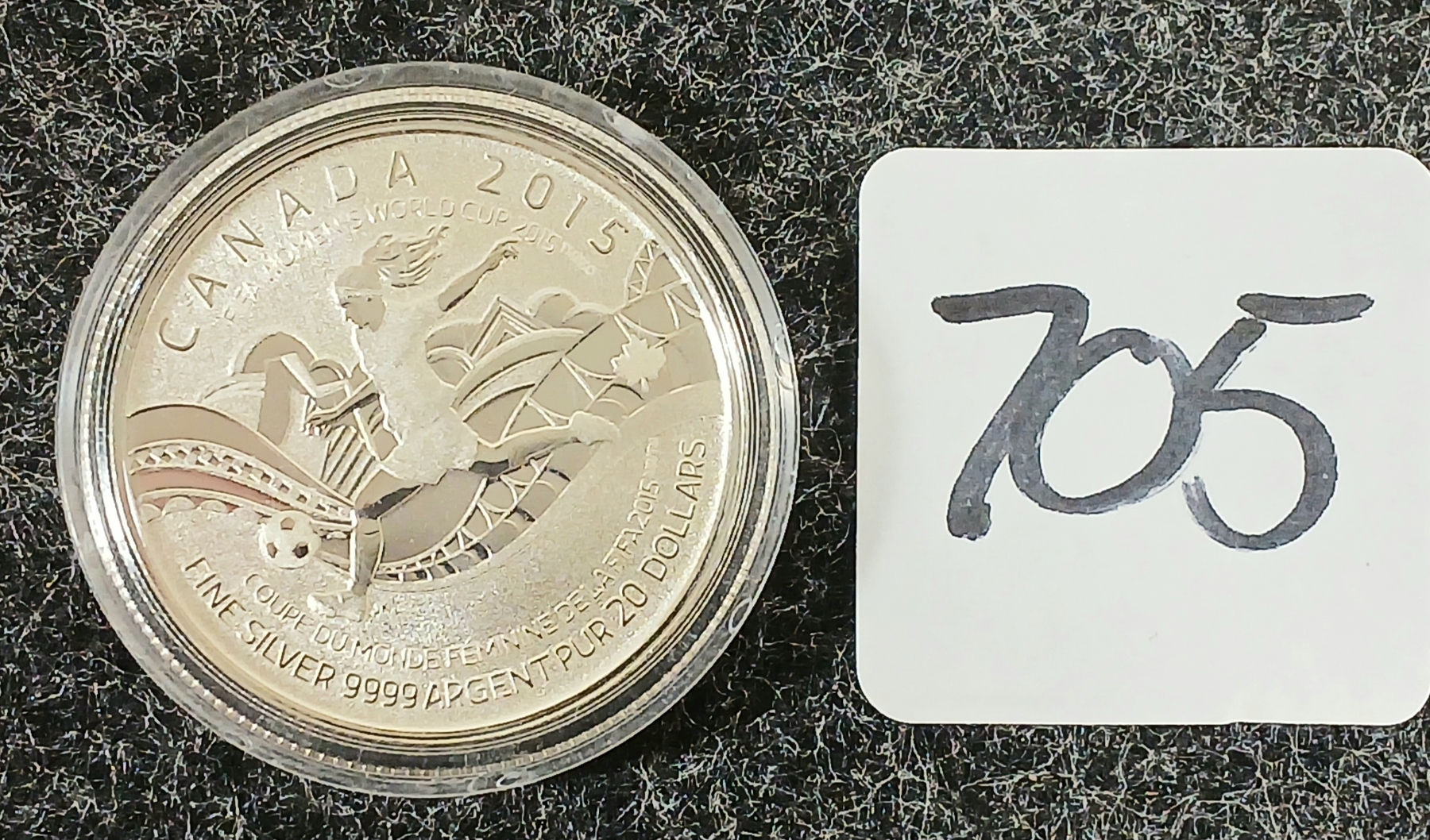 Lot 705 2015 CDN $20 FINE SILVER COIN