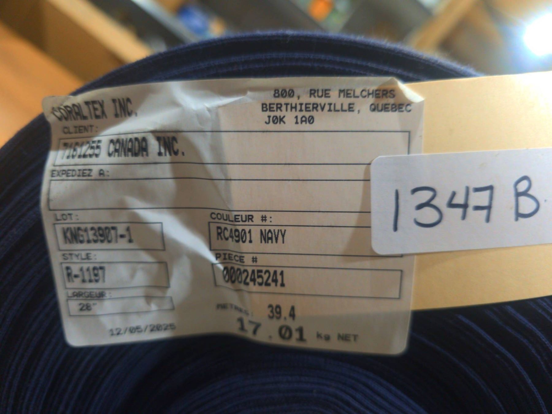 Lot 1347B Roll of Navy Fabric, 39.4 Yards