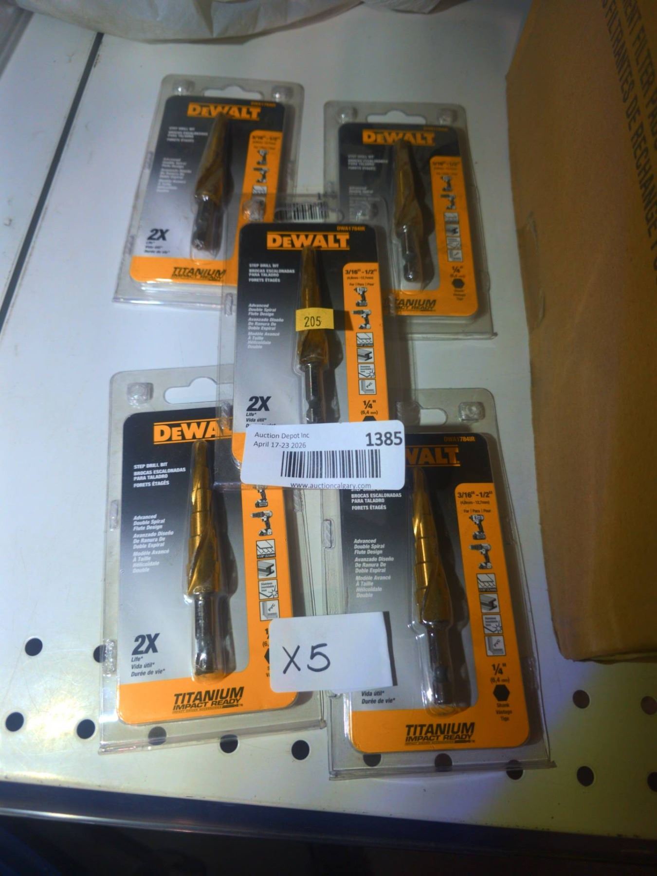 Lot 1385 Lot of 5 - DeWalt DWADT548IR Step Drill Bit Set