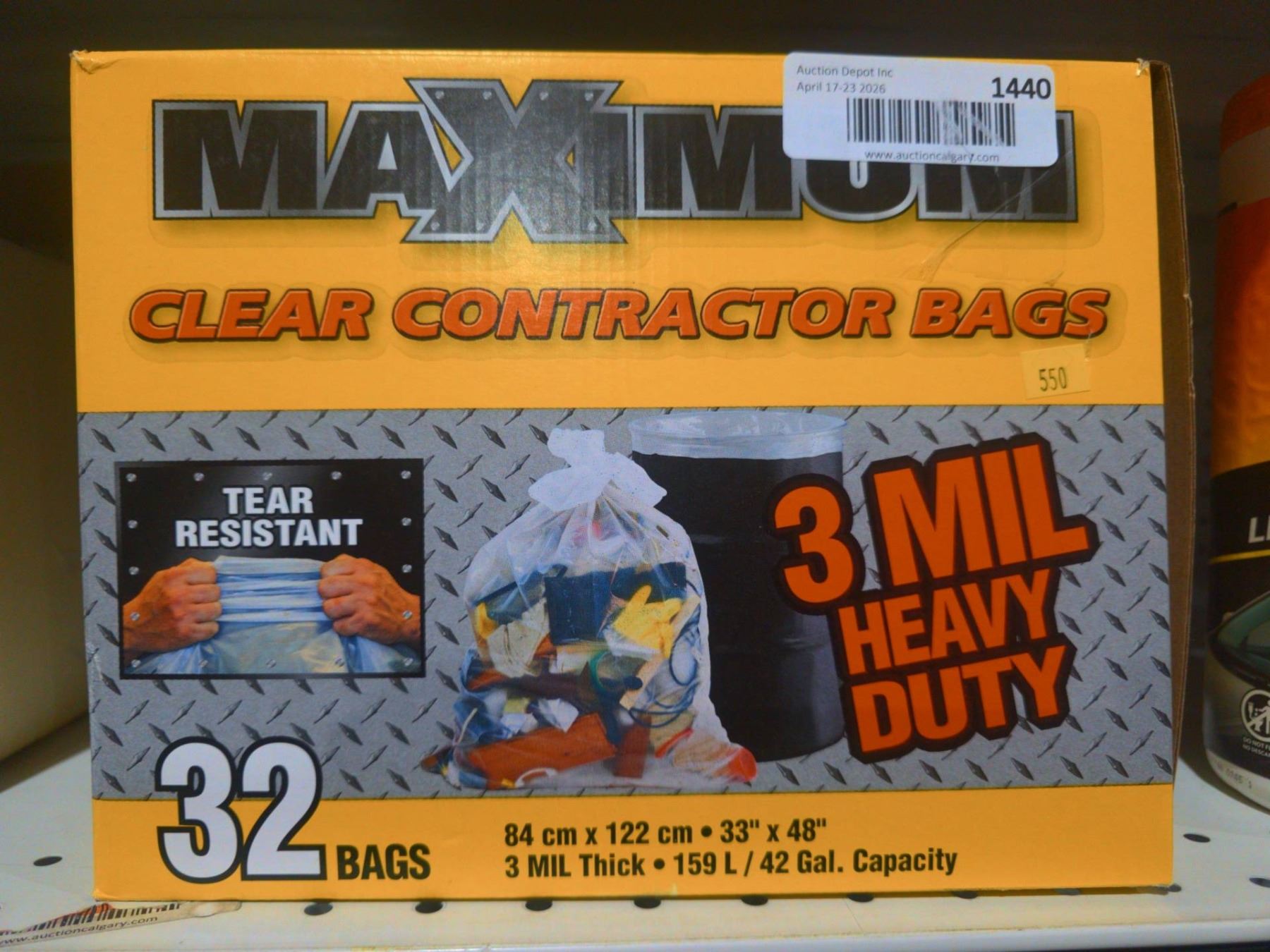 Lot 1440 MAXIMUM Clear Contractor Bags, 32-Pack