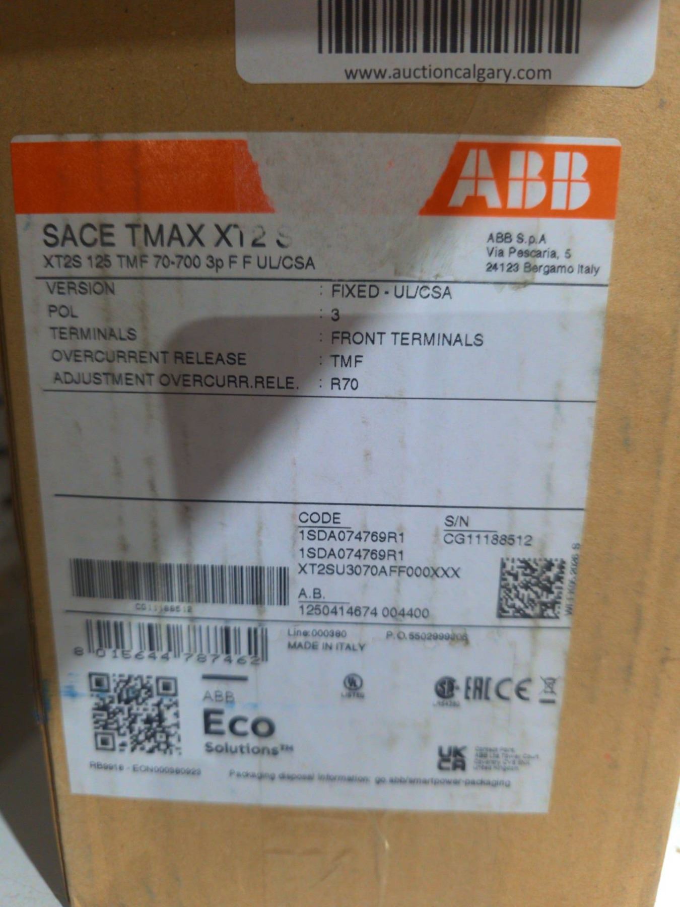 Lot 1451 ABB SACE Tmax XT2S 125 TMF 70-700 Circuit