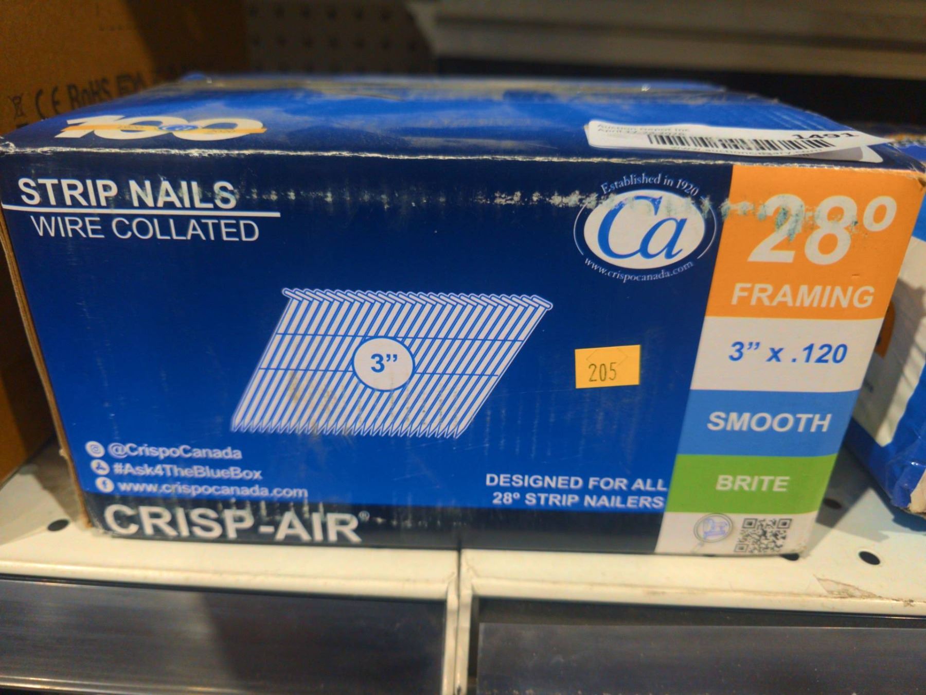 Lot 1491 Crisp-Air 3" Strip Nails, 28° Framing