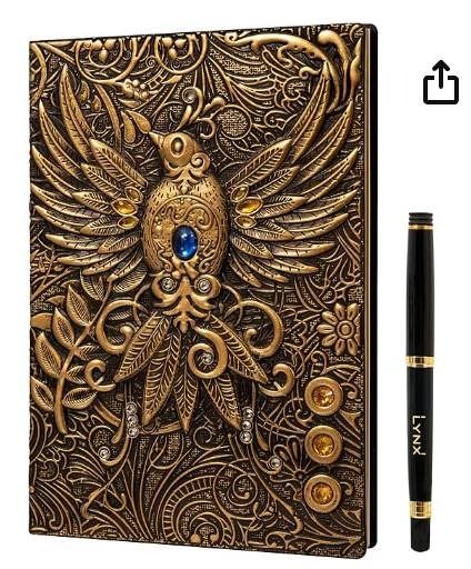 DND Notebook / Journal, Unique 200 Page Book with 3D Gold Phoenix Embossed Faux Leather Cover with Pen