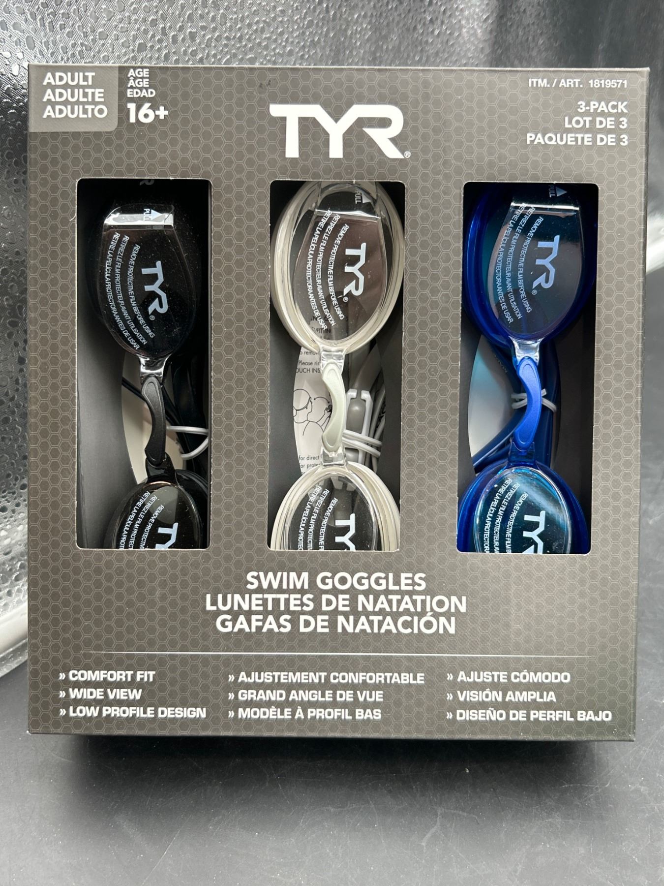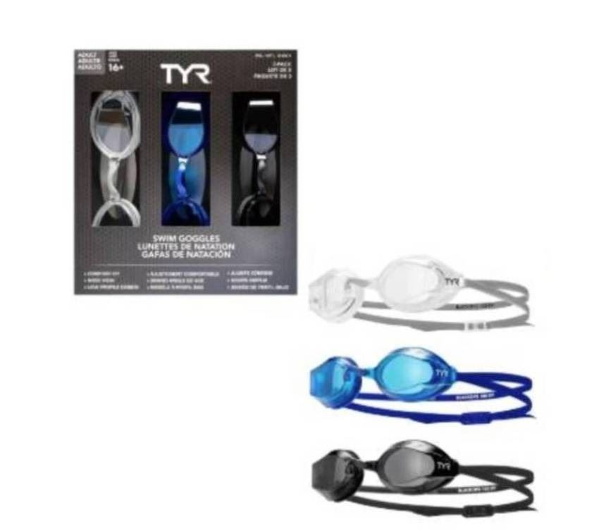 Lot 4055 TYR Swim Goggles 3-Pack for Adults 16+ - Model 169637