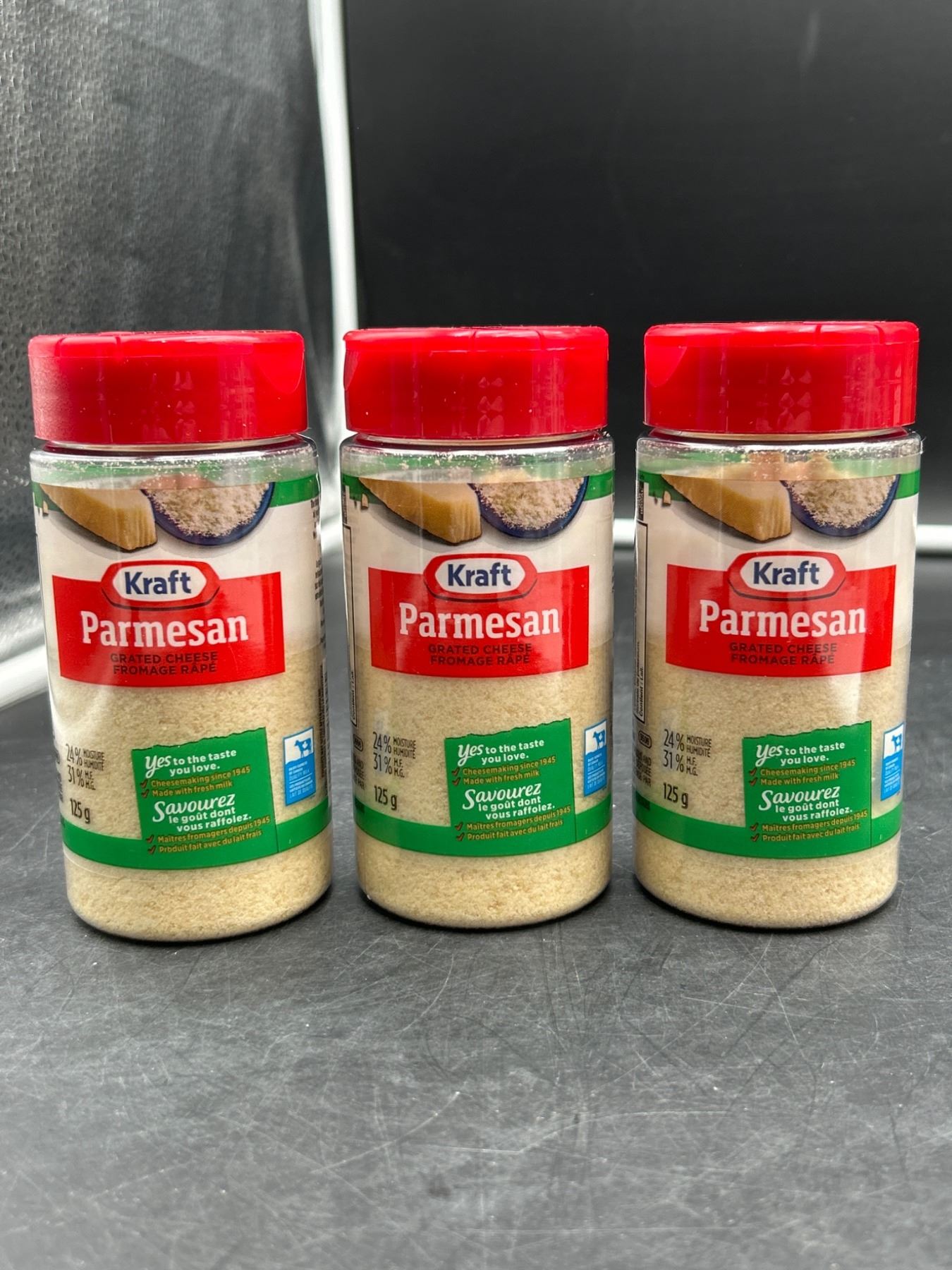 3 Kraft Parmesan Grated Cheese Containers, 125g Each