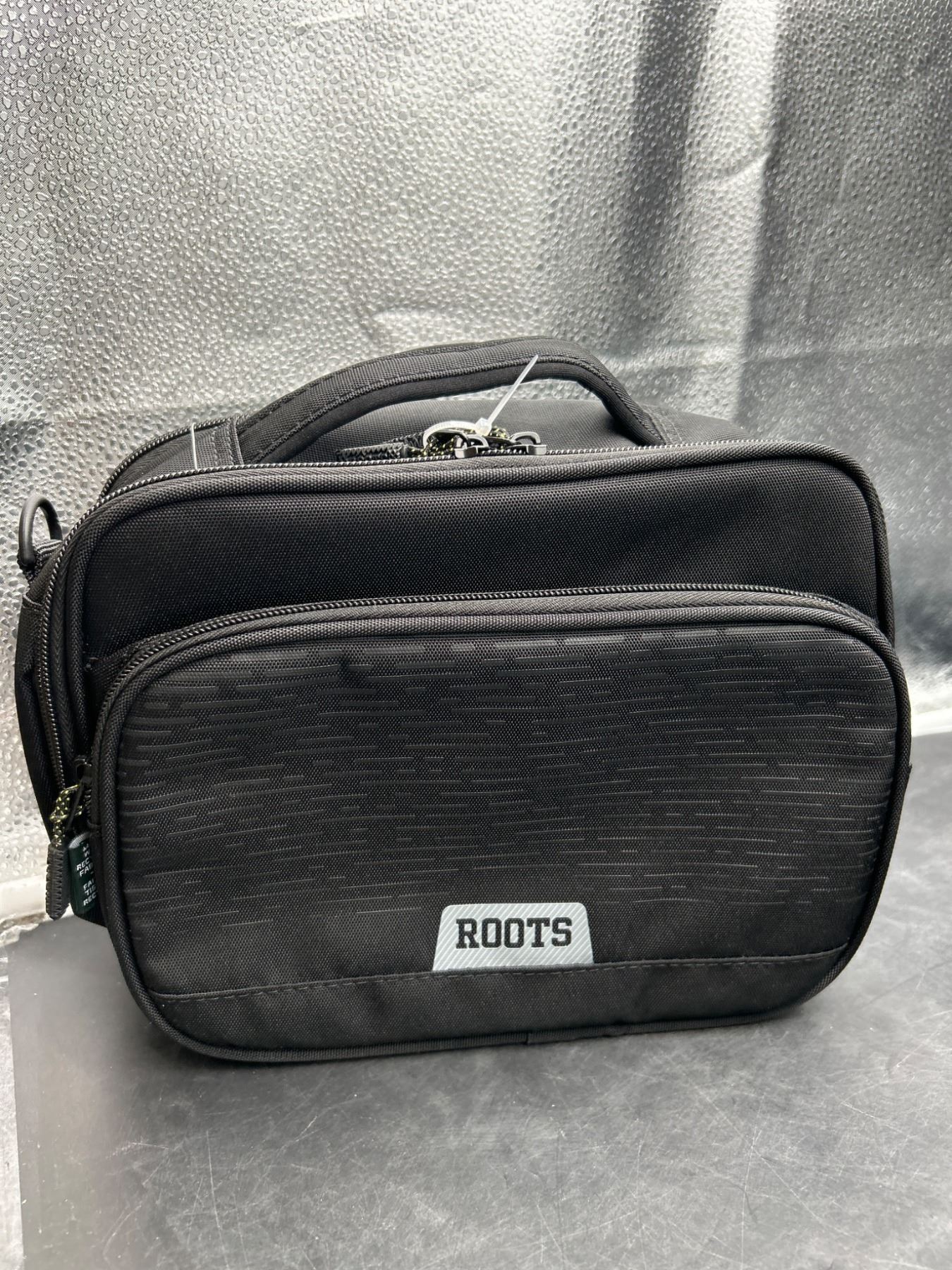 Lot 4129 Roots Compact Lunch Bag in Black with Dual Zipper Design