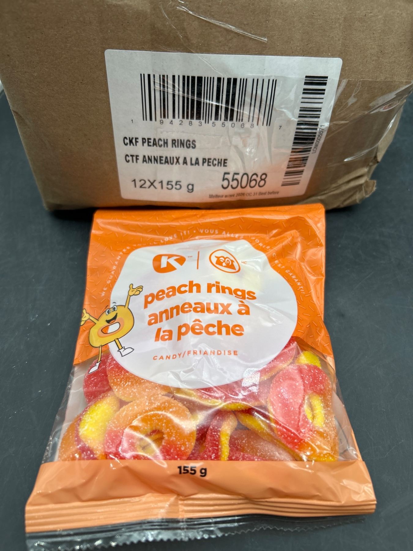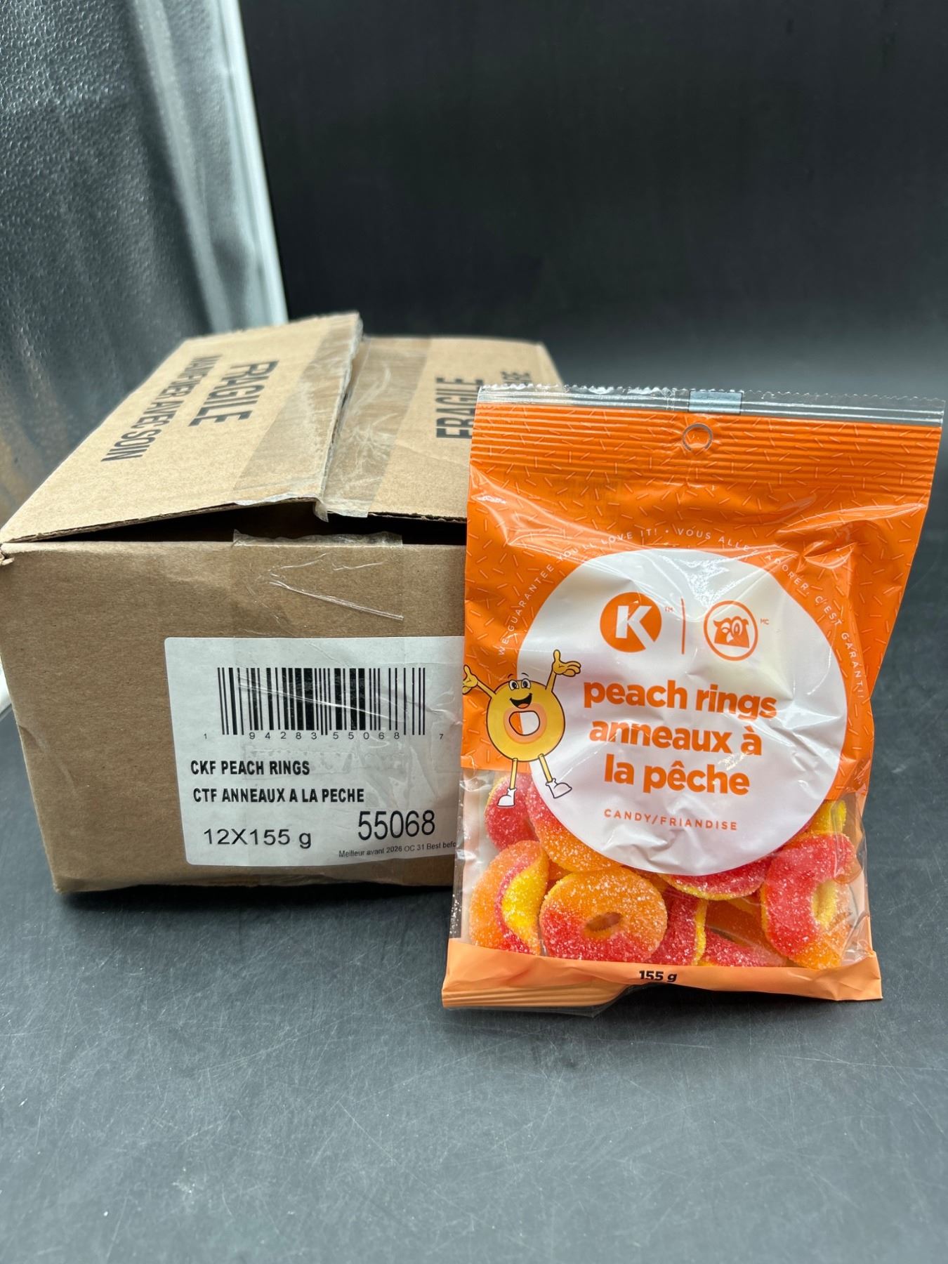 Lot 4165 Circle K Peach Rings Candy, 12 Packs of 155g Each,