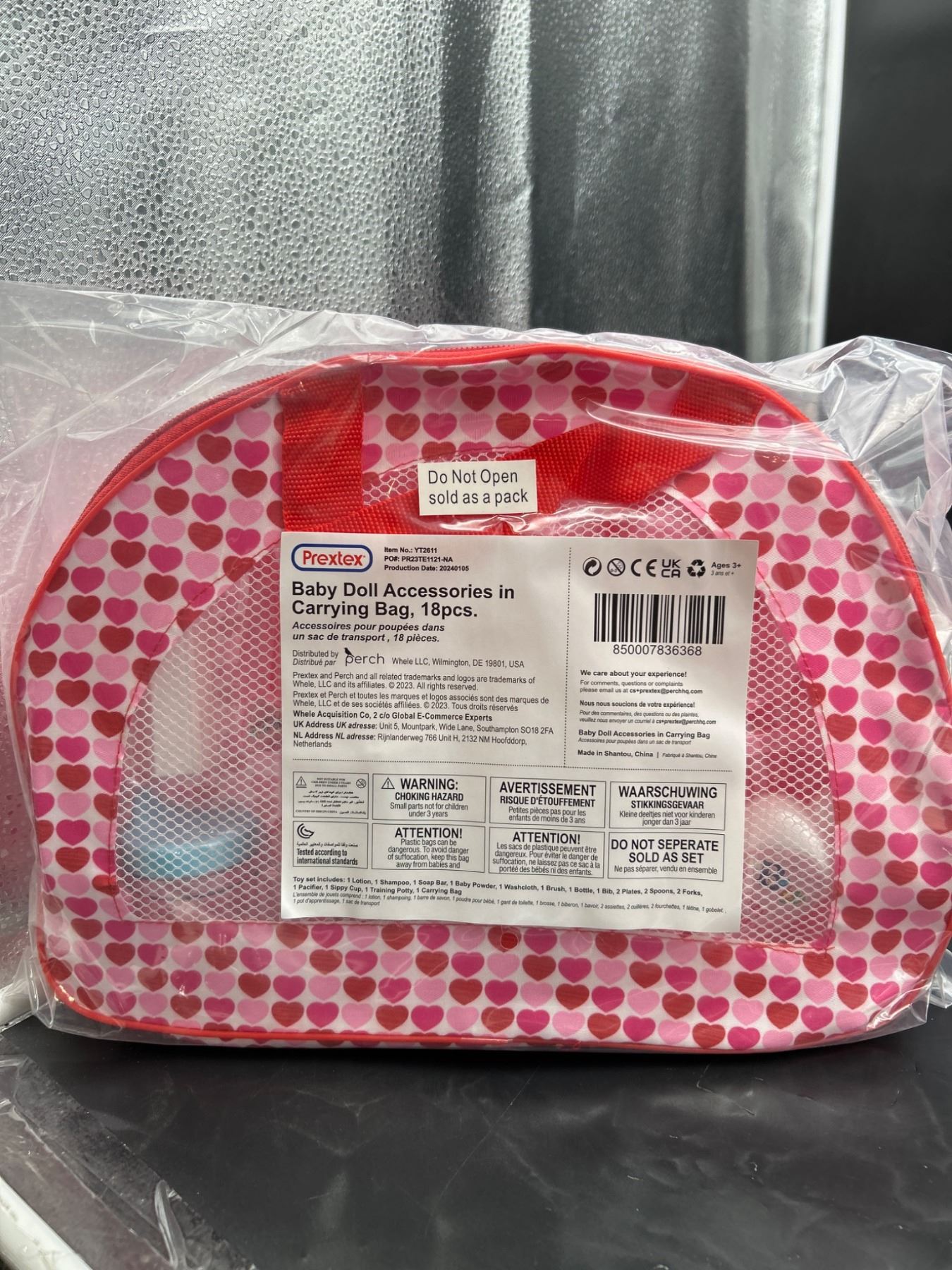 Lot 4168 Prextex Baby Doll Accessories in Carrying Bag, 18pcs