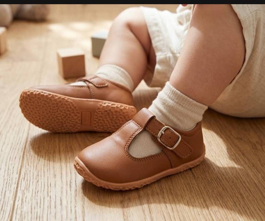 Children’s Leather T-Strap Shoes, Size 7, Brown