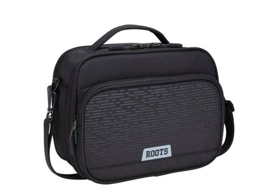 Lot 4203 Roots Compact Lunch Bag in Black with Dual Zipper Design
