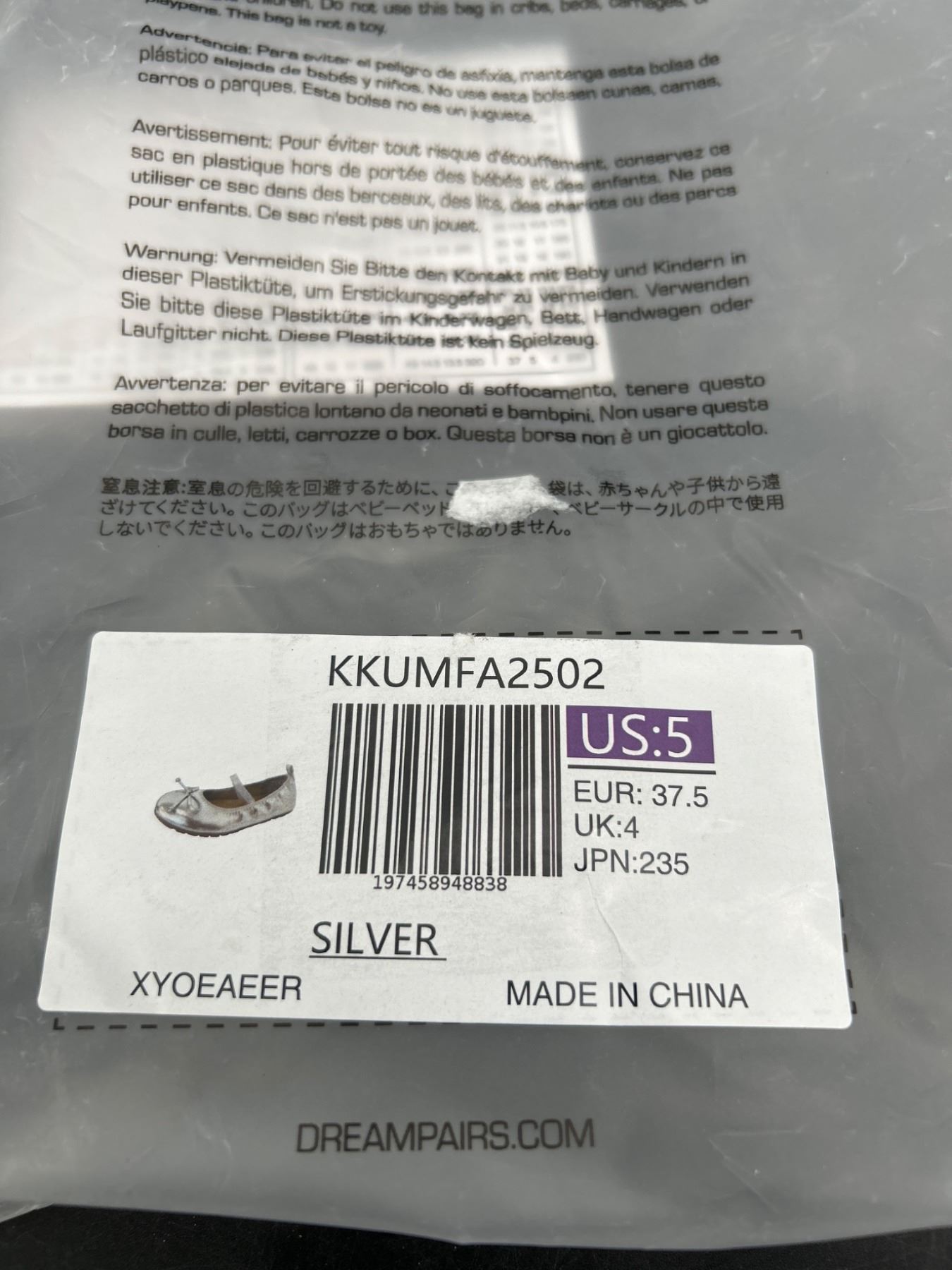 Lot 4245 Dream Pairs Silver Shoes Size 5