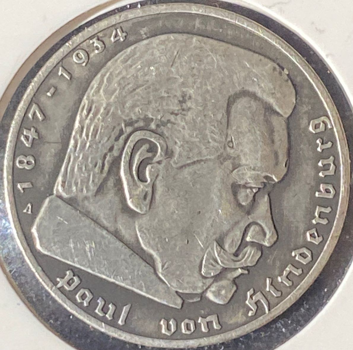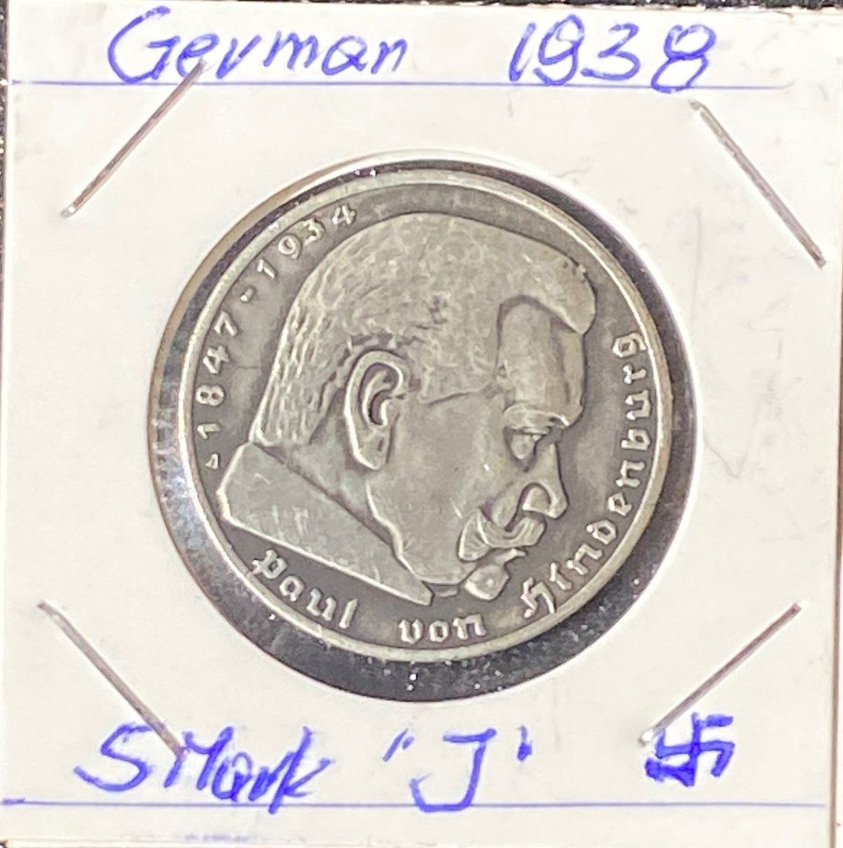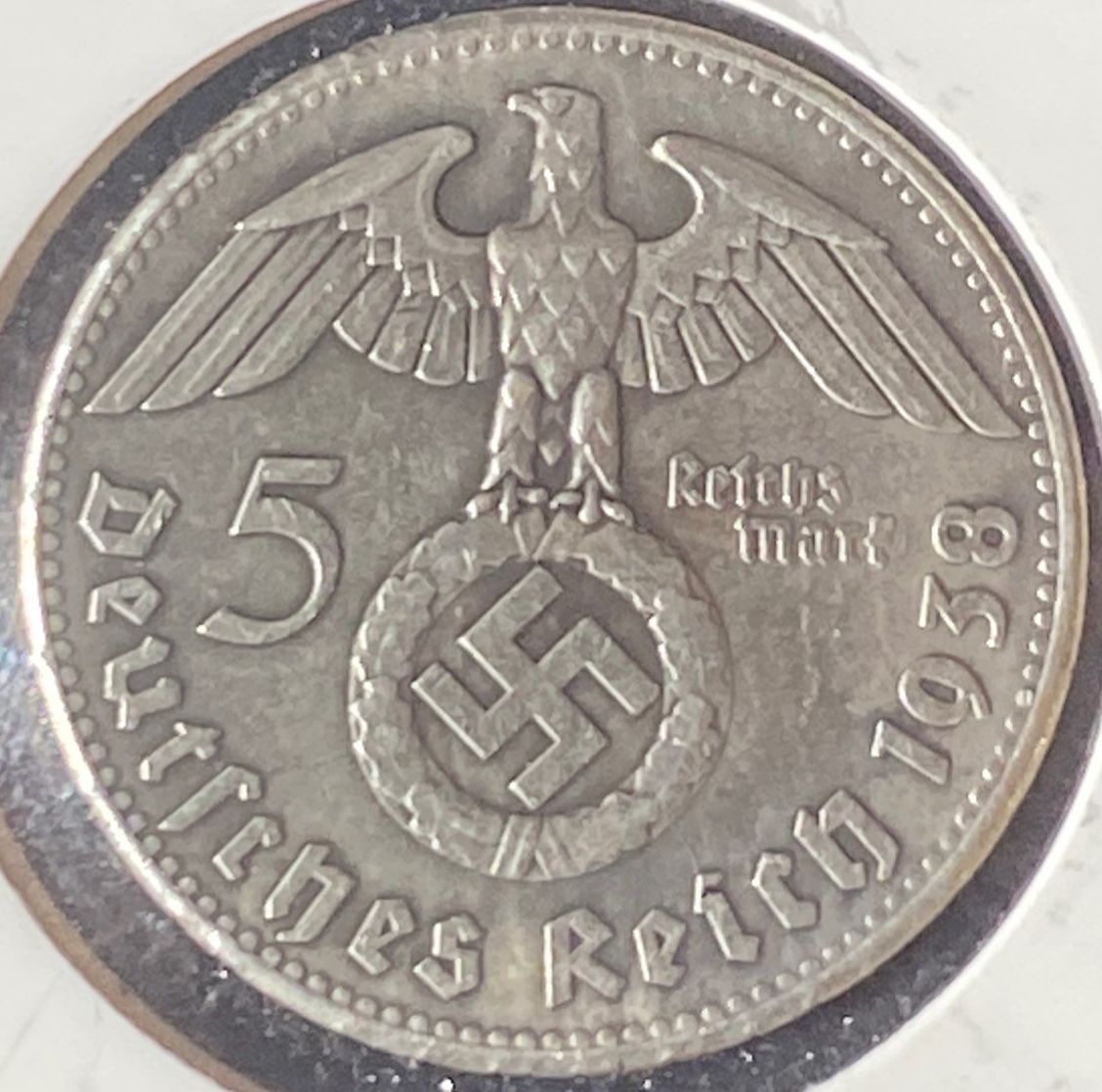 Lot 26 1938 German 5 Mark Coin 90% Silver 13.77 Grams