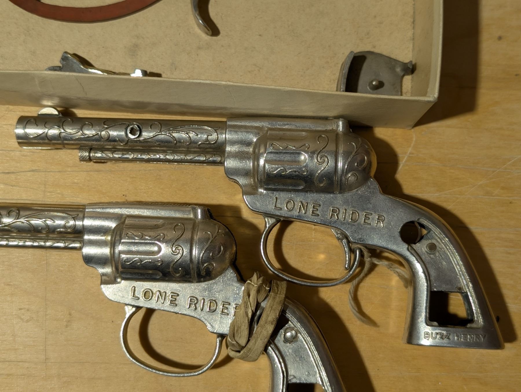 Lot 1430 (2) Vintage Lone Rider Buzz Henry Toy Pistols w/ Parts