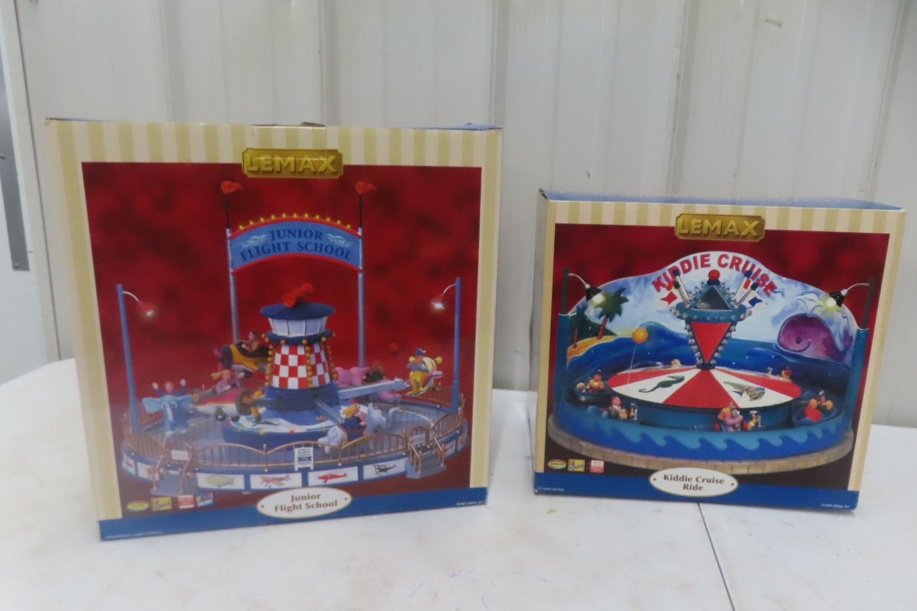 Lot 842 Lemax Village Collection – Junior Flight School Animated Carnival Ride and Kiddie Cruise Ride