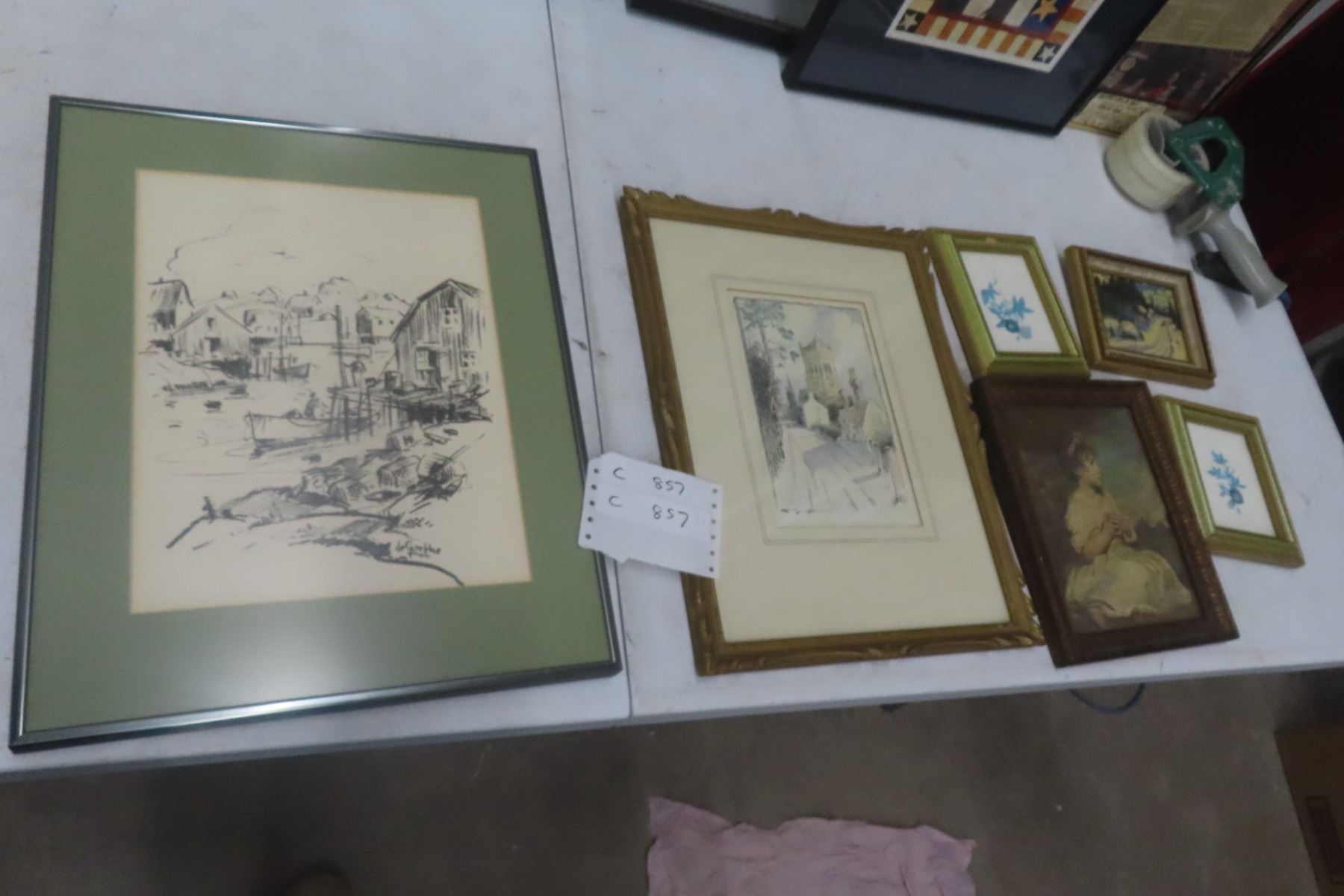 Lot 857A Framed Pictures and 5 Etchings/Prints, Largest 13" x 17"