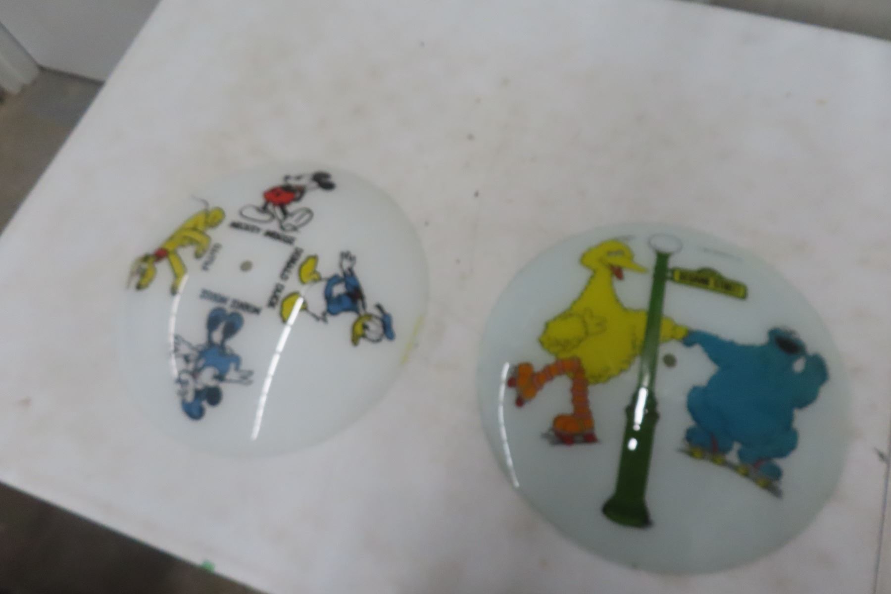 Lot 840A (2) Vintage Light Fixture Shades - Sesame Street 1981 Muppets Inc & Walt Disney Productions