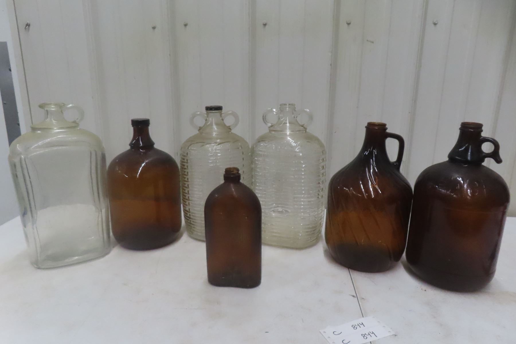 Lot 844A Old Glass Jugs - Double Handle, Bleach, Complete w/ Caps, One Swirl