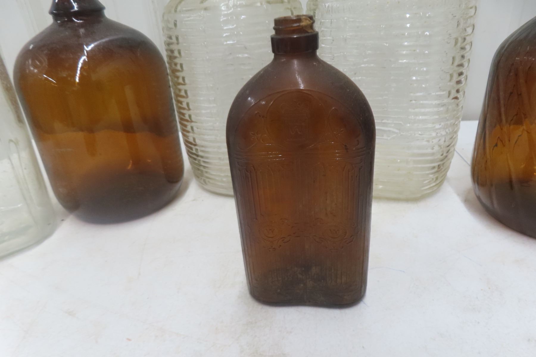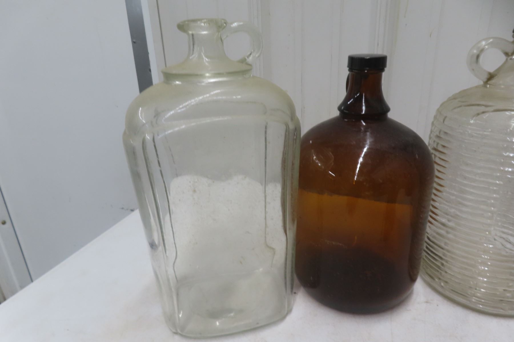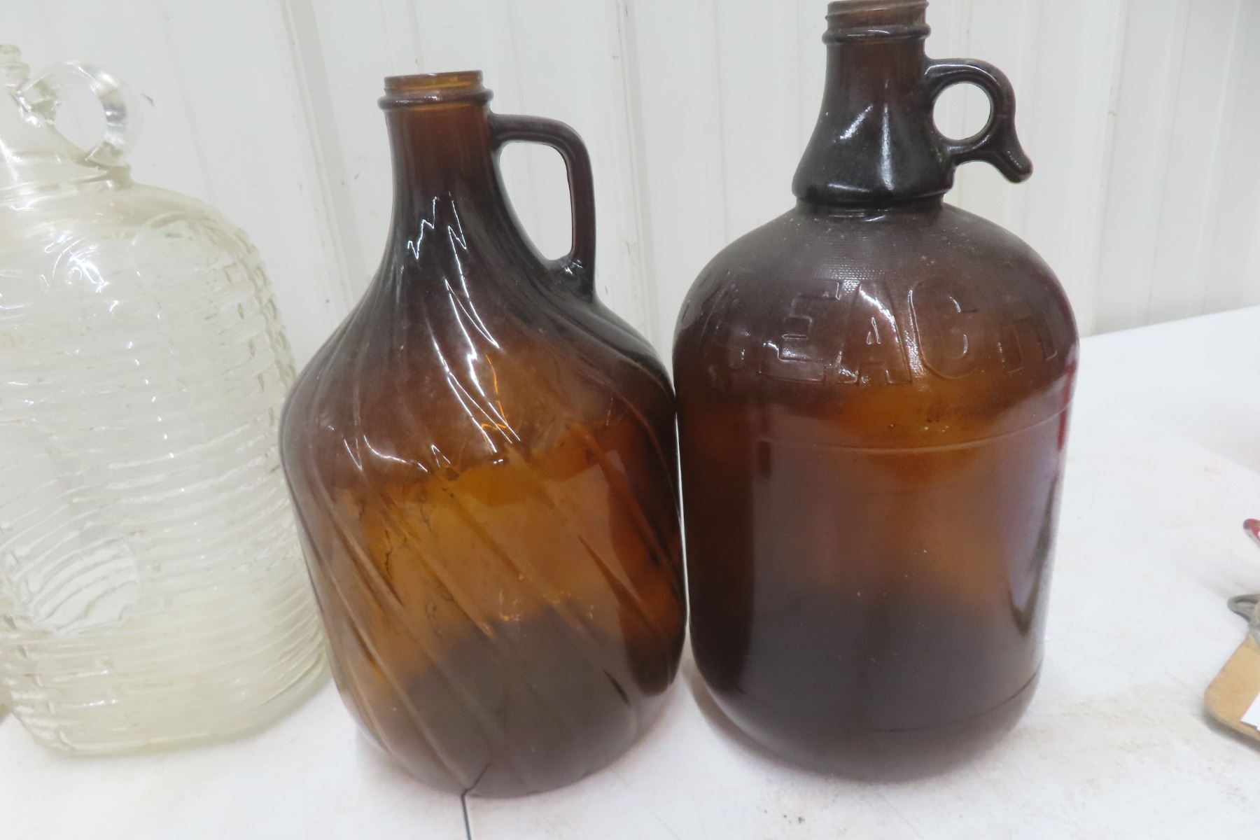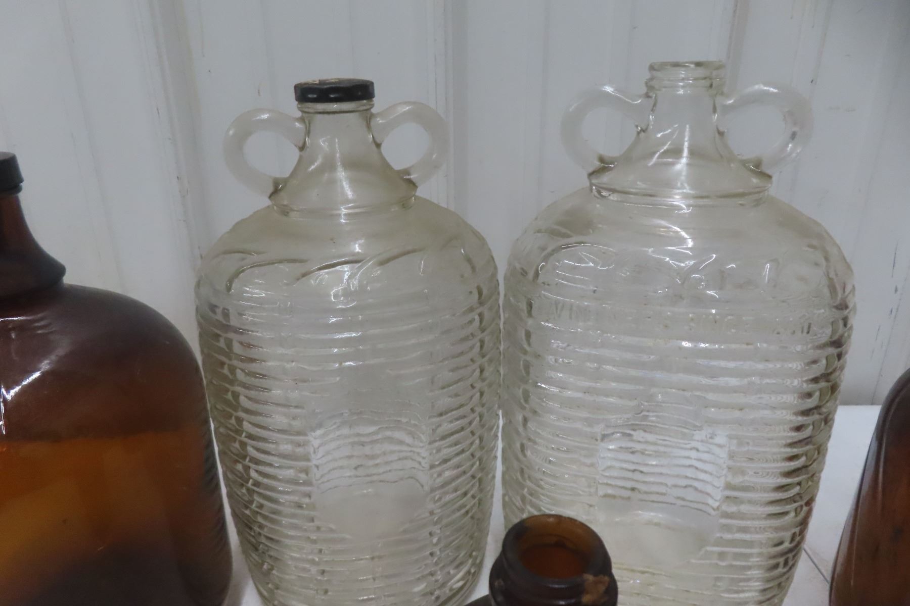 Old Glass Jugs - Double Handle, Bleach, Complete w/ Caps, One Swirl