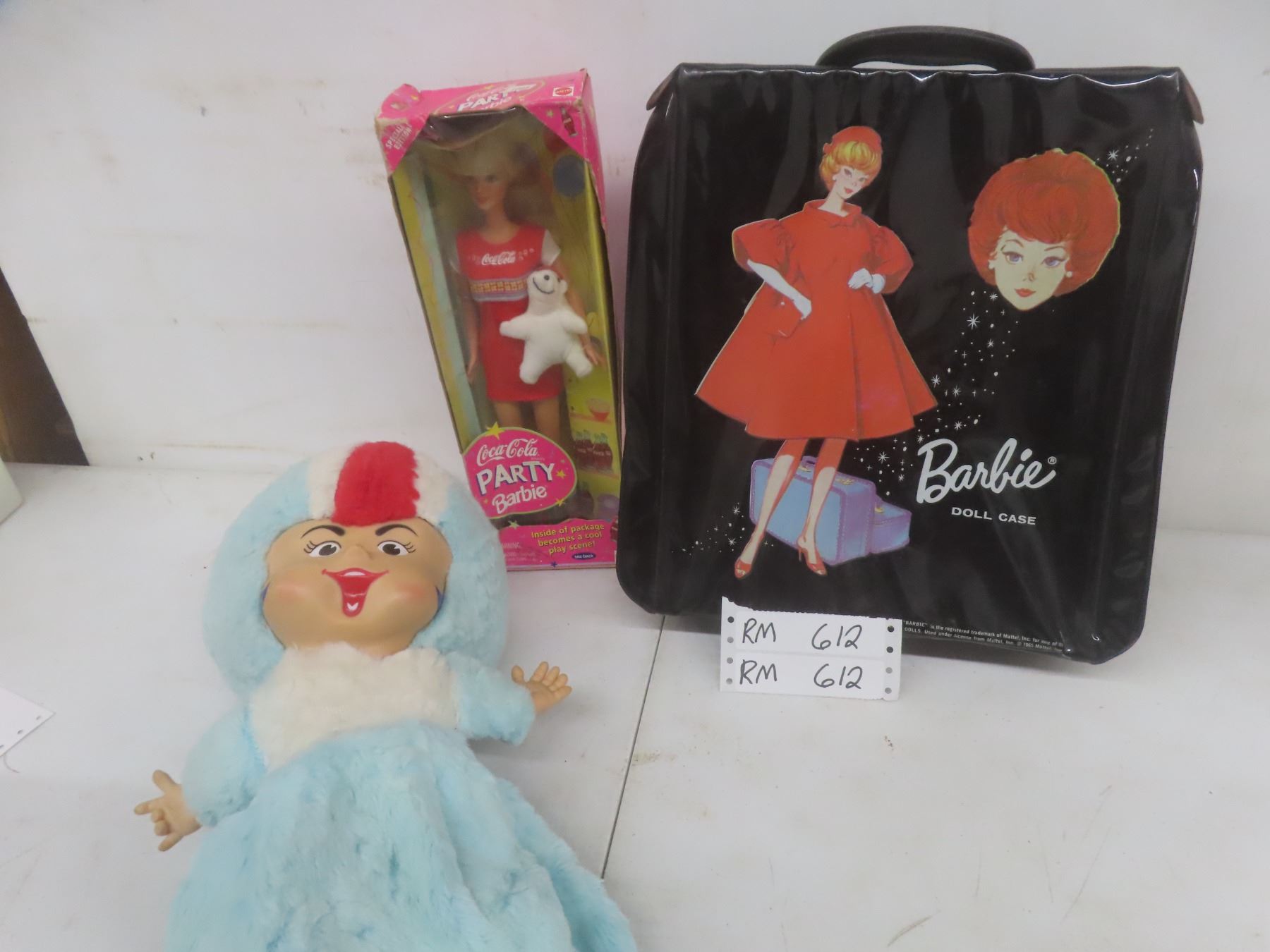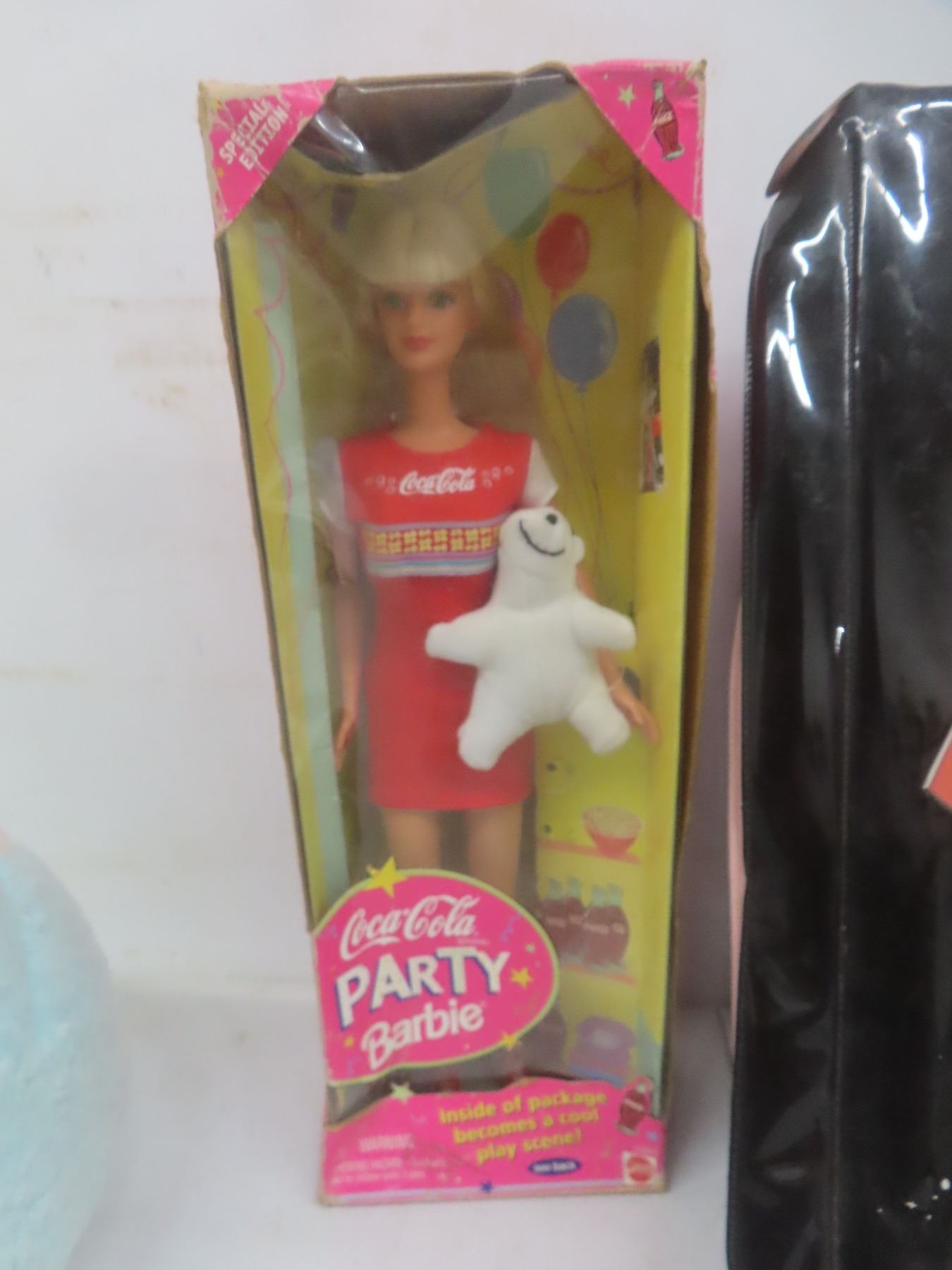 Lot 612 1998 Coca Cola Party Barbie Doll in Box, 1965 Barbie Doll Case & Genie Gas Doll