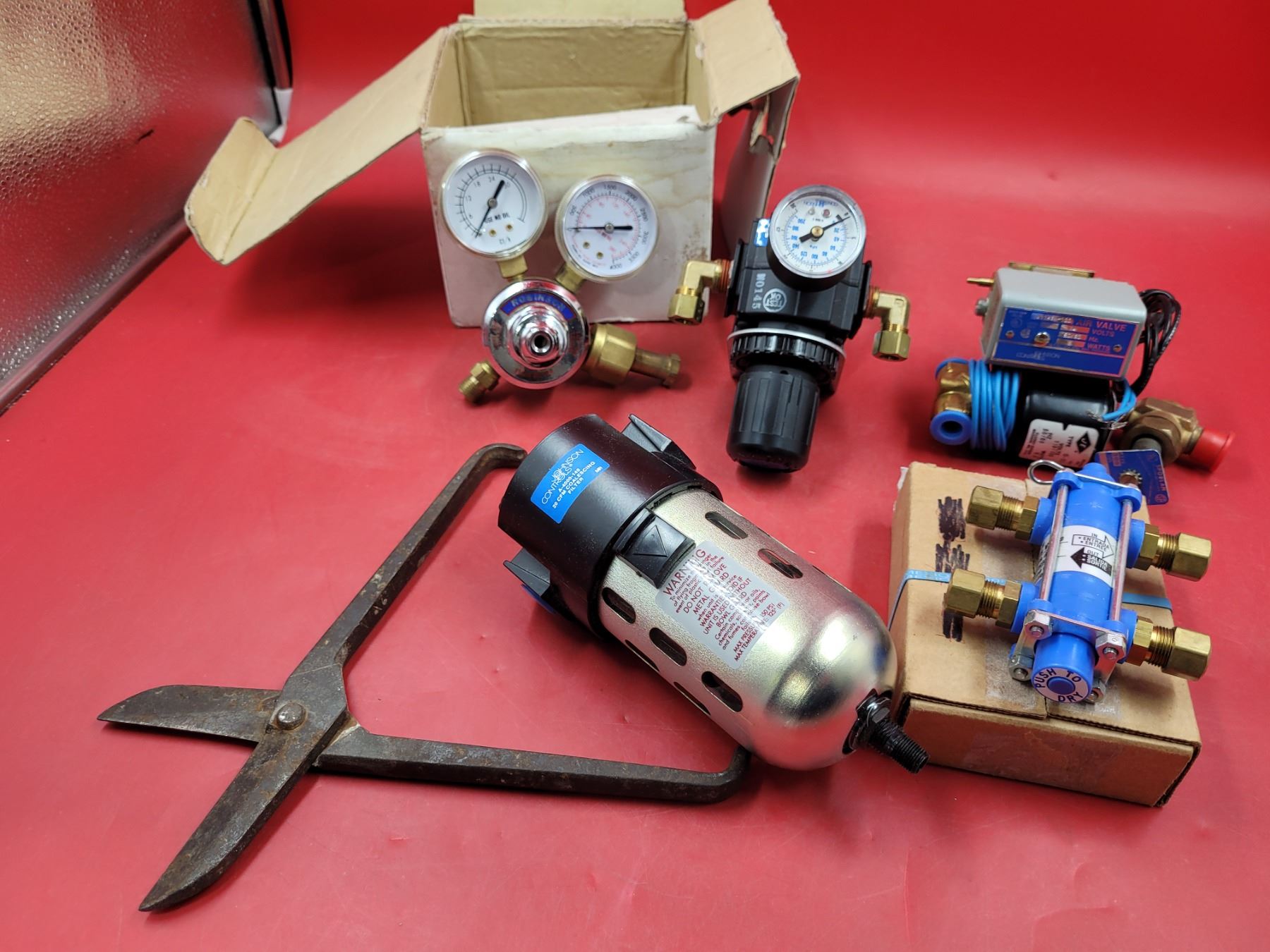 Lot 734 20 CFM coalescing filter, pressure reducting valve,Air valves