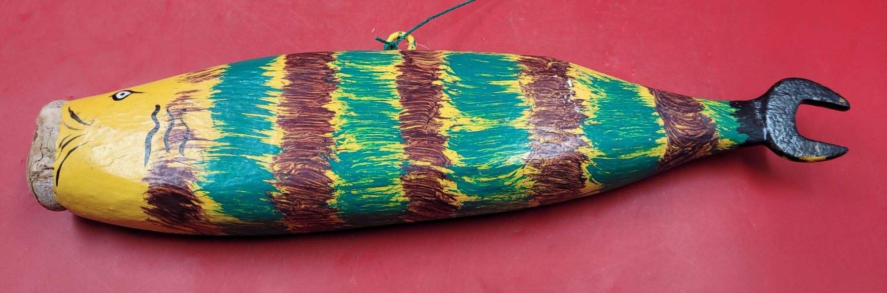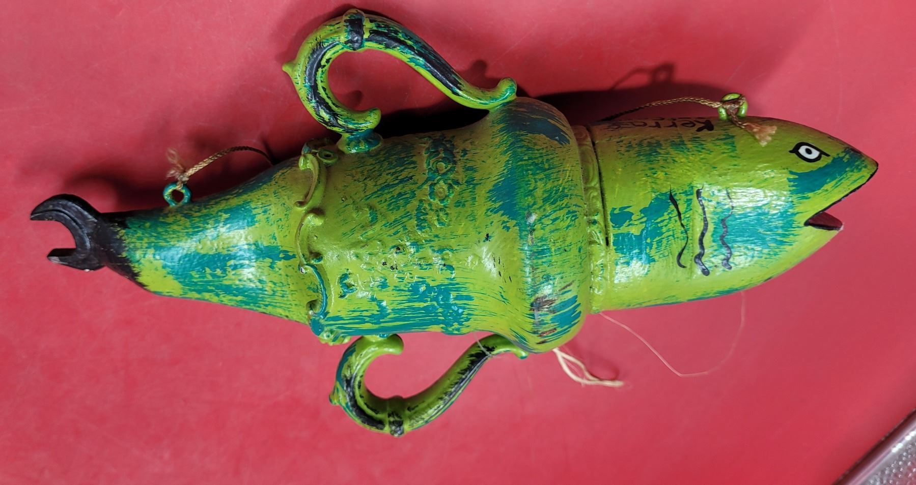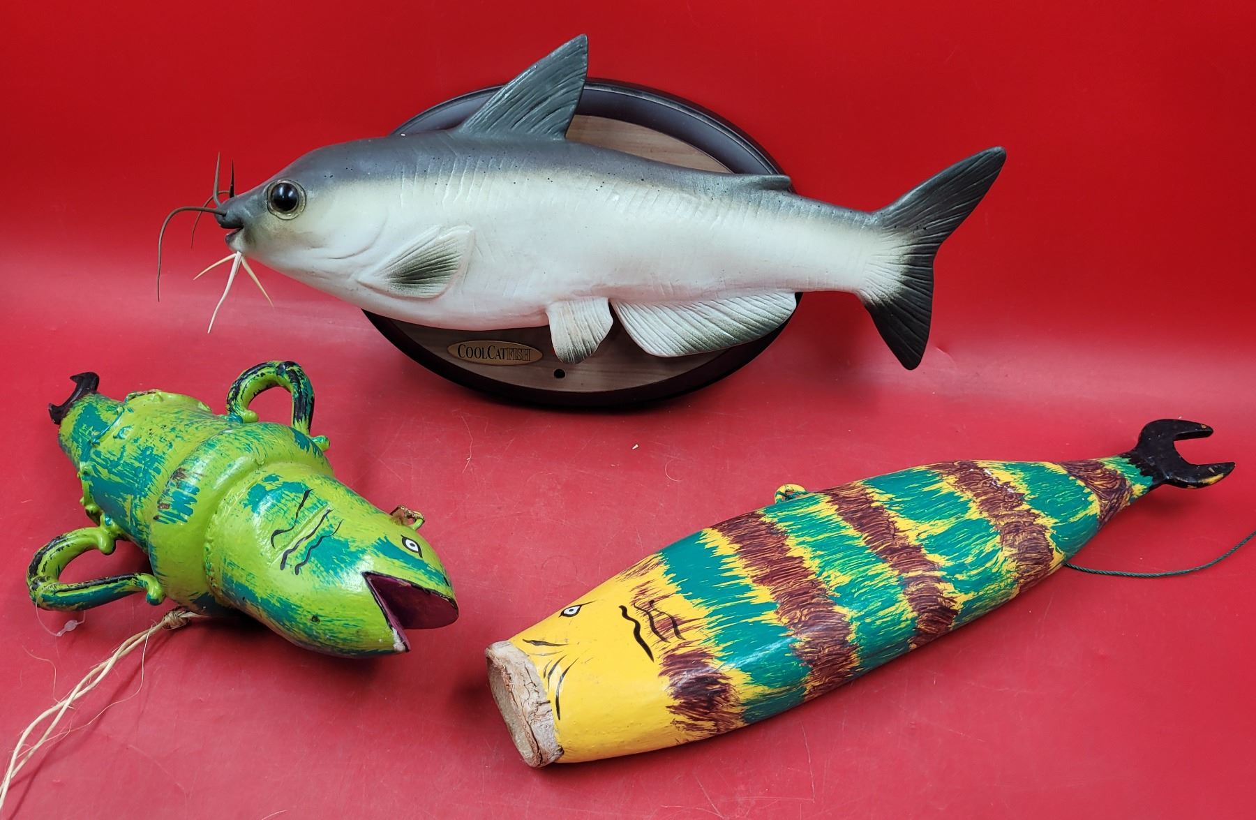 Lot 736 CoolCat talking Fish and 2 wooden fish wreches