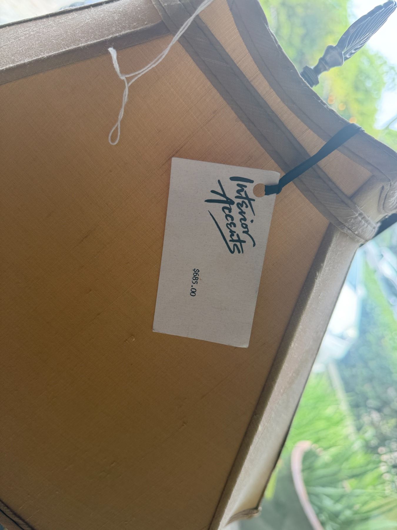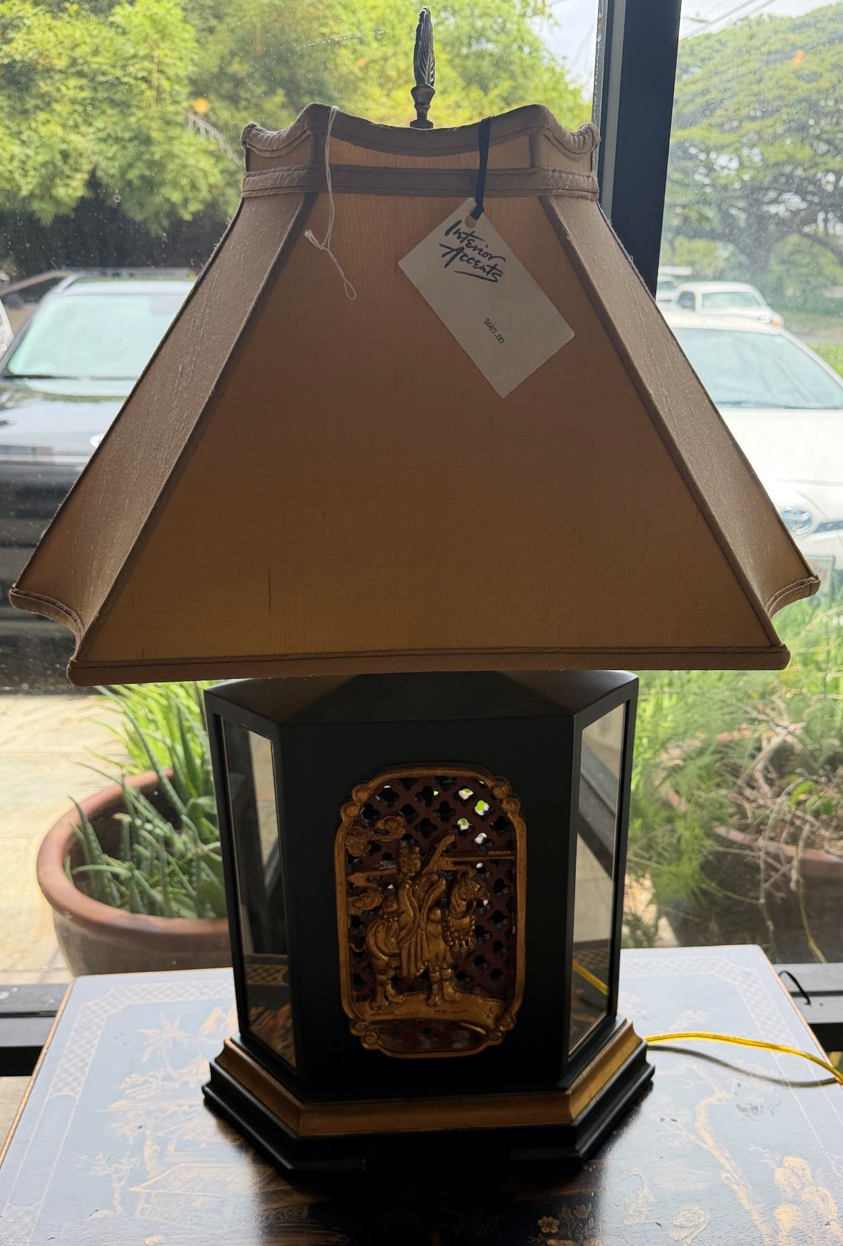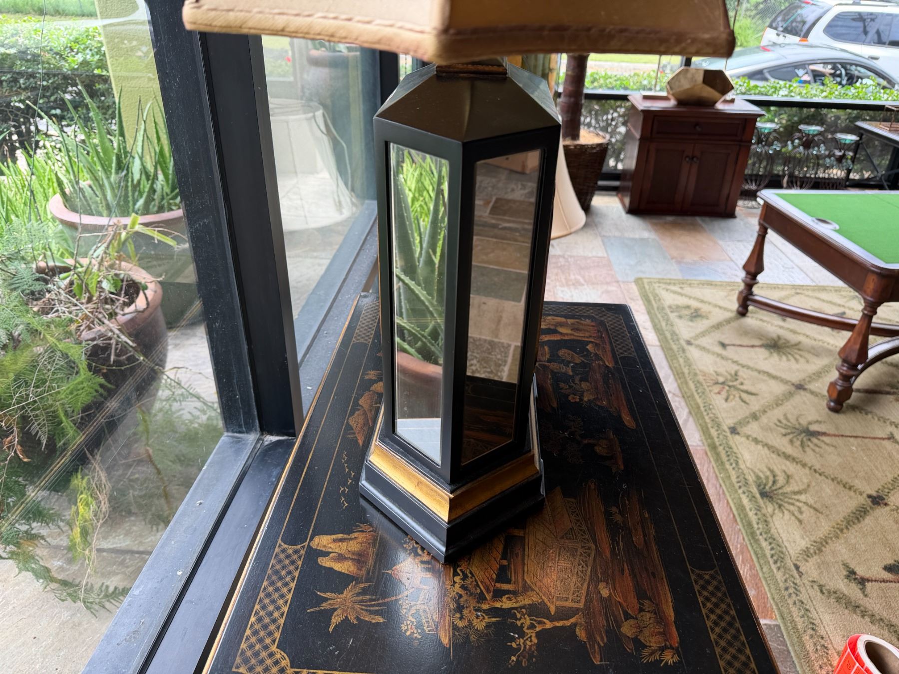 Lot 5 Table Lamp w/ Inlaid Mirrors, Metal Accented Base & Tan Shade 28"H