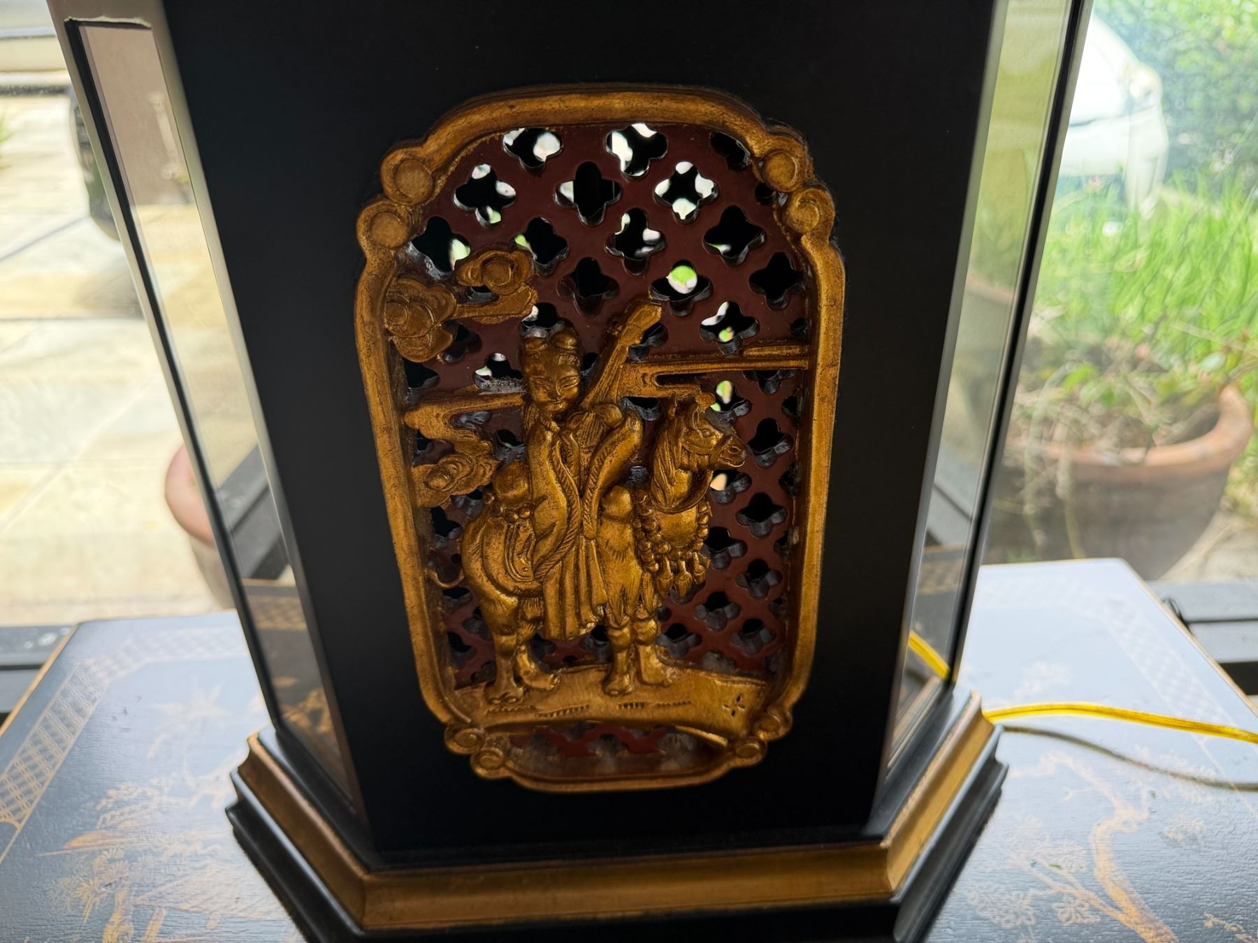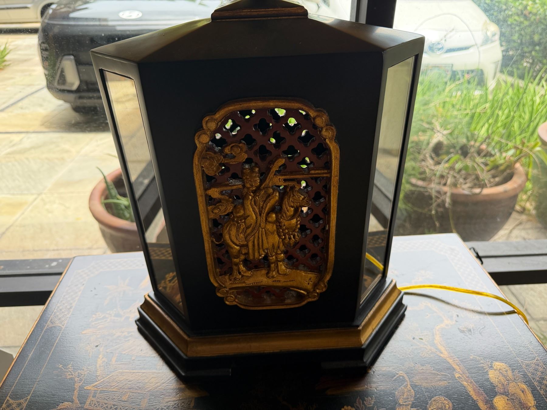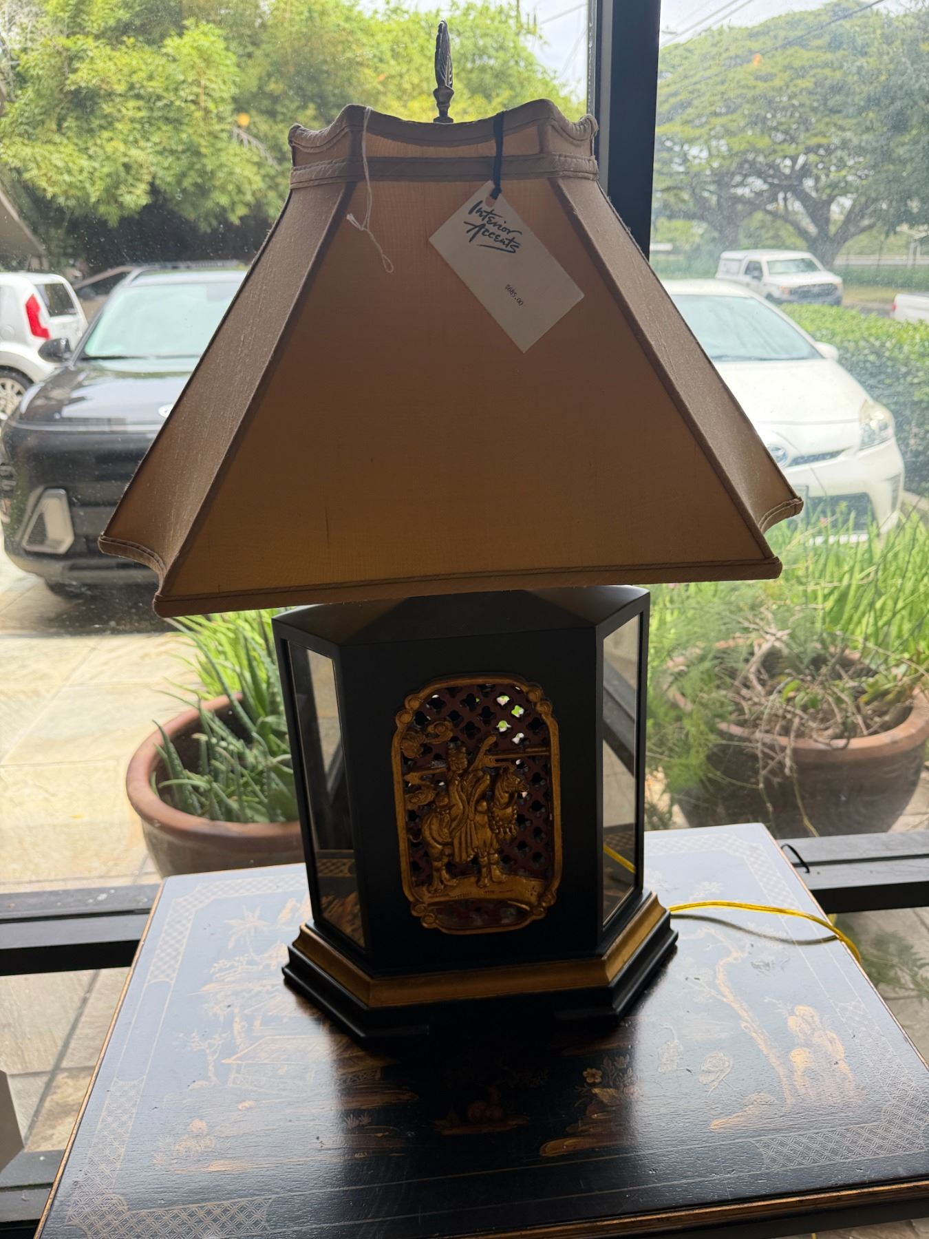 Lot 5 Table Lamp w/ Inlaid Mirrors, Metal Accented Base & Tan Shade 28"H