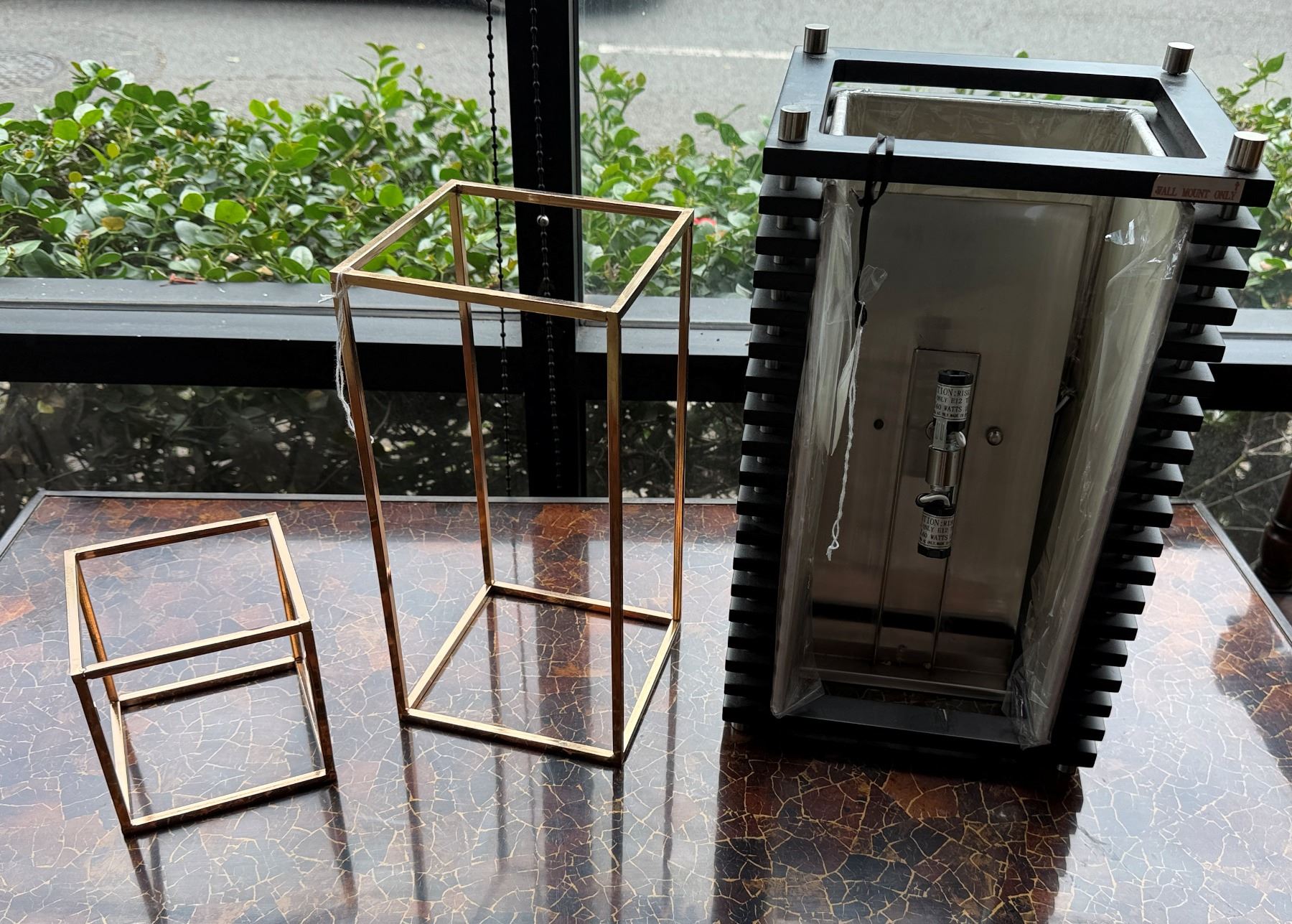 Qty 2 Metal Rectangular Stands & Kimura Sconce, Misc Sizes