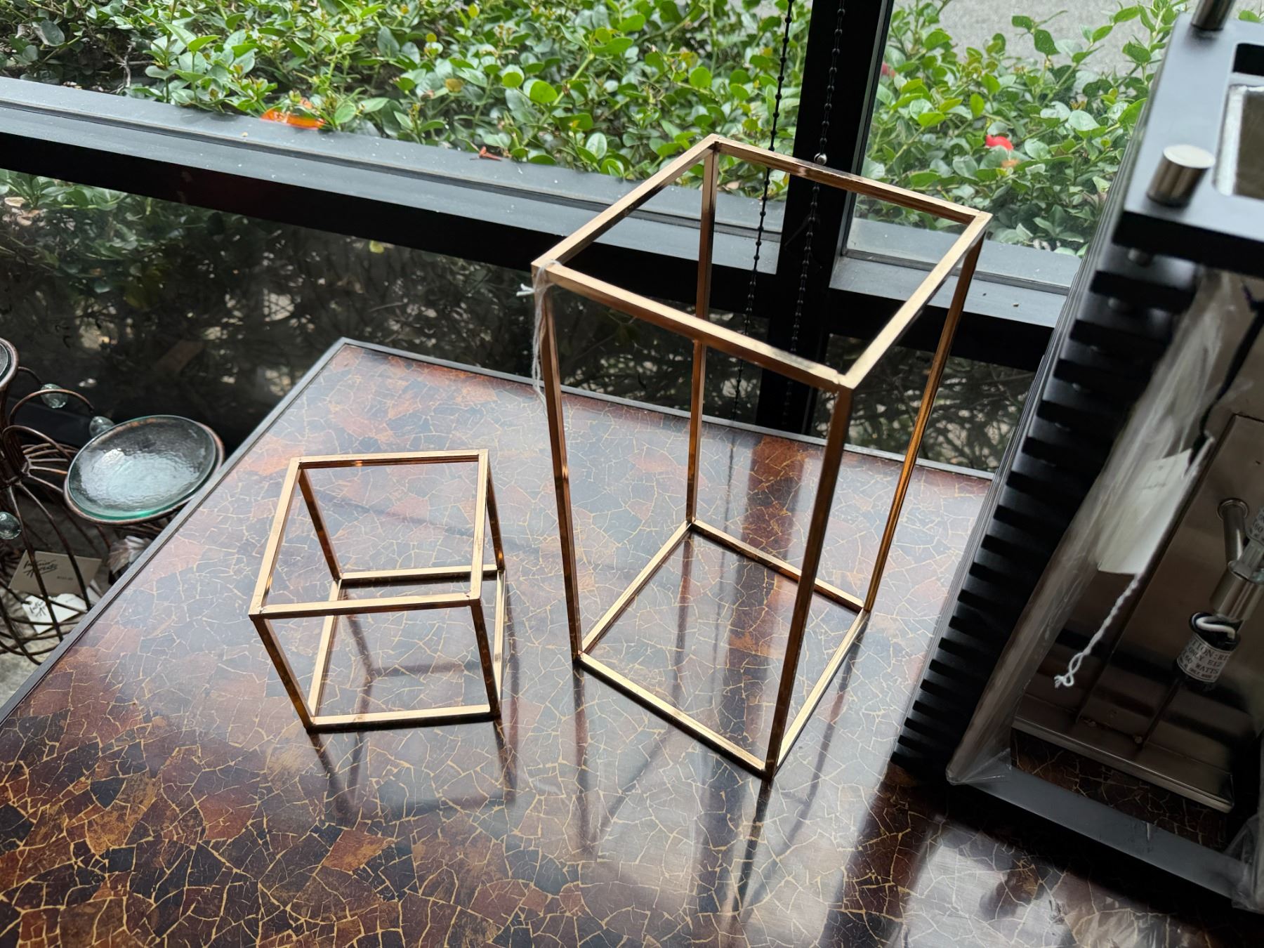 Lot 13 Qty 2 Metal Rectangular Stands & Kimura Sconce, Misc Sizes