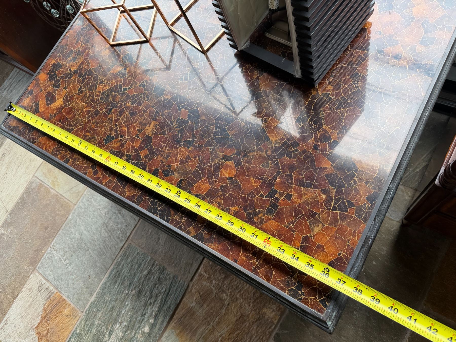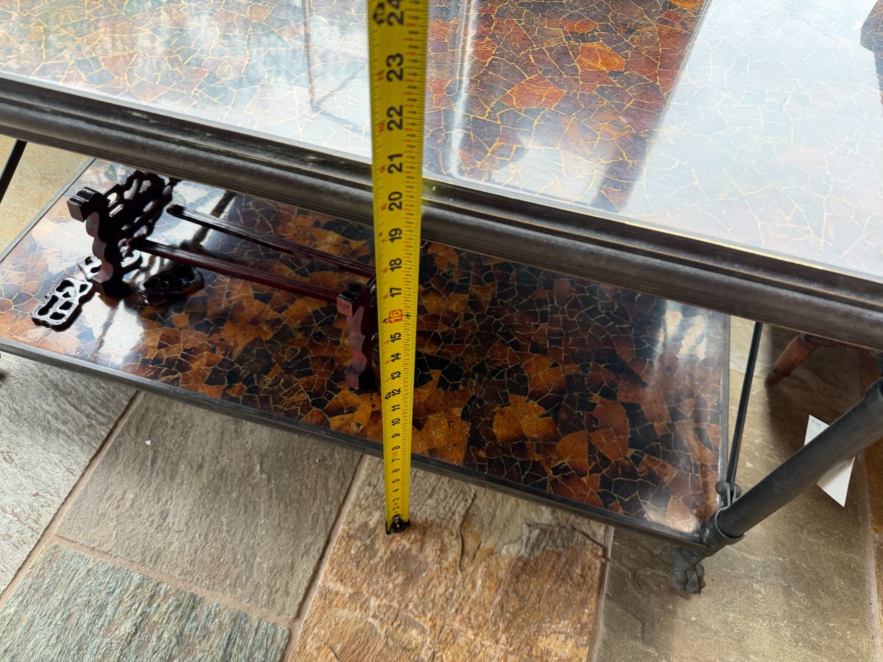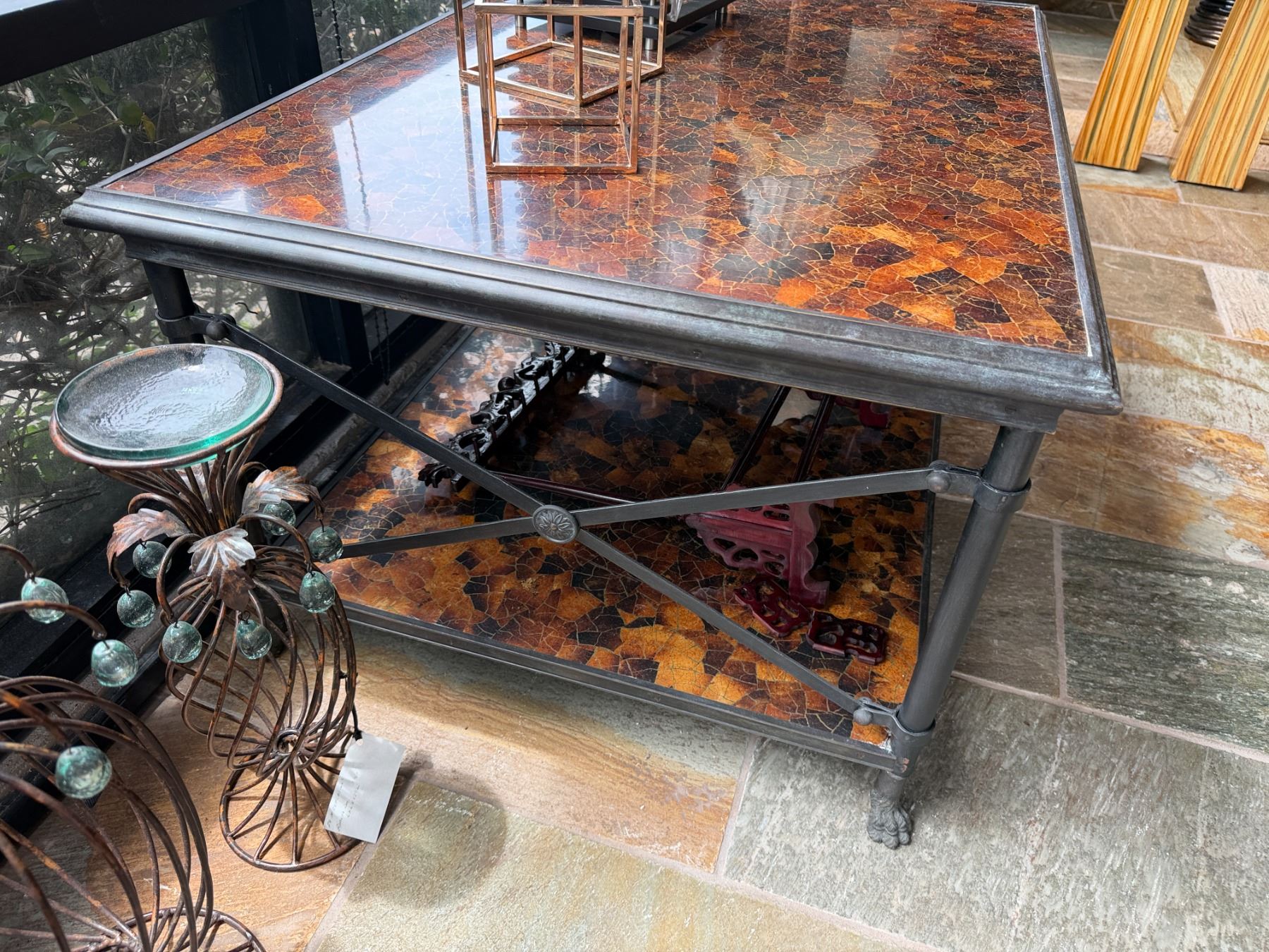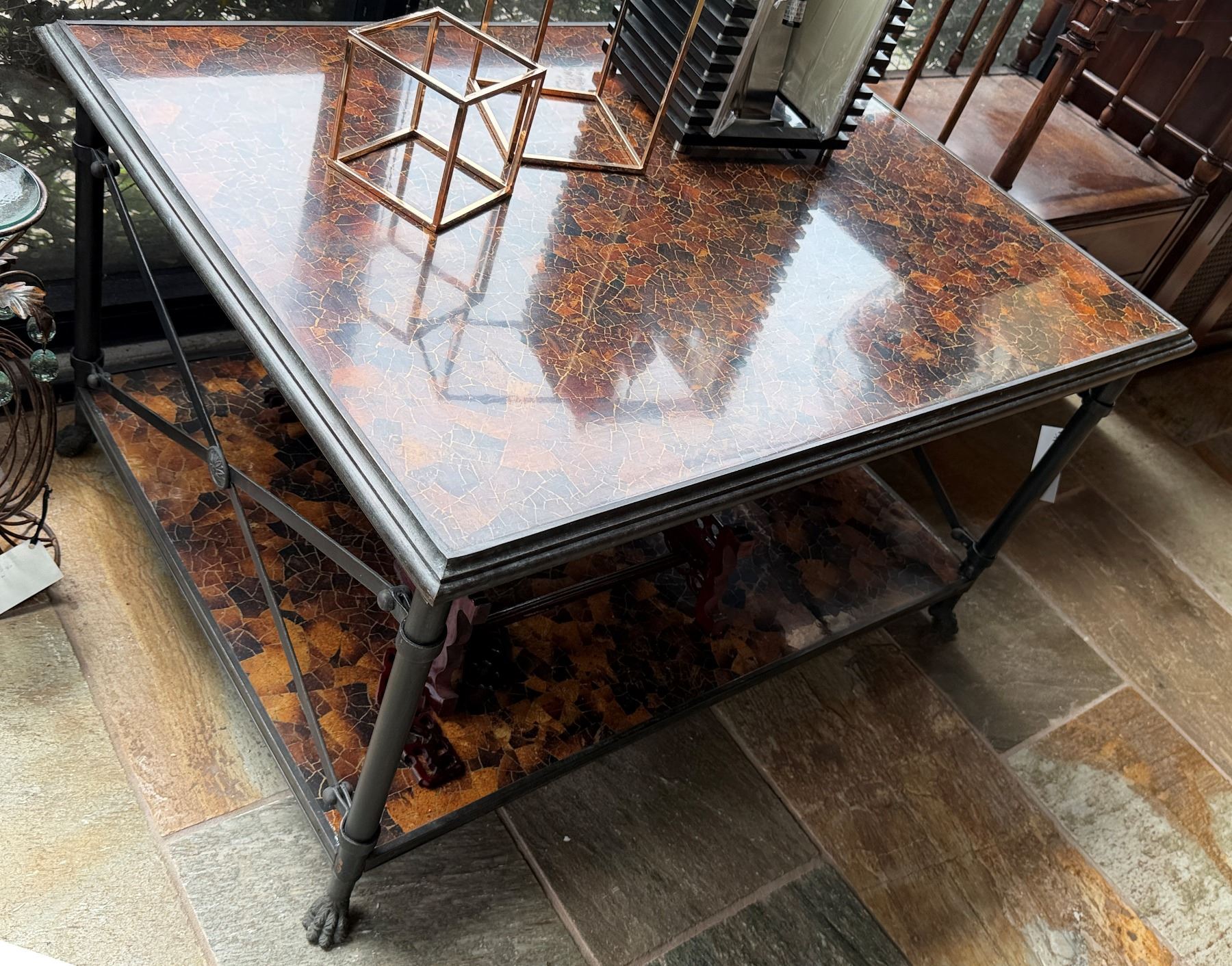 Theodore Alexander Coffee Table w/ Crackle Finish Top, Undershelf, Metal Legs & Paw Feet made in Vietnam 38" x 28" x 20"H