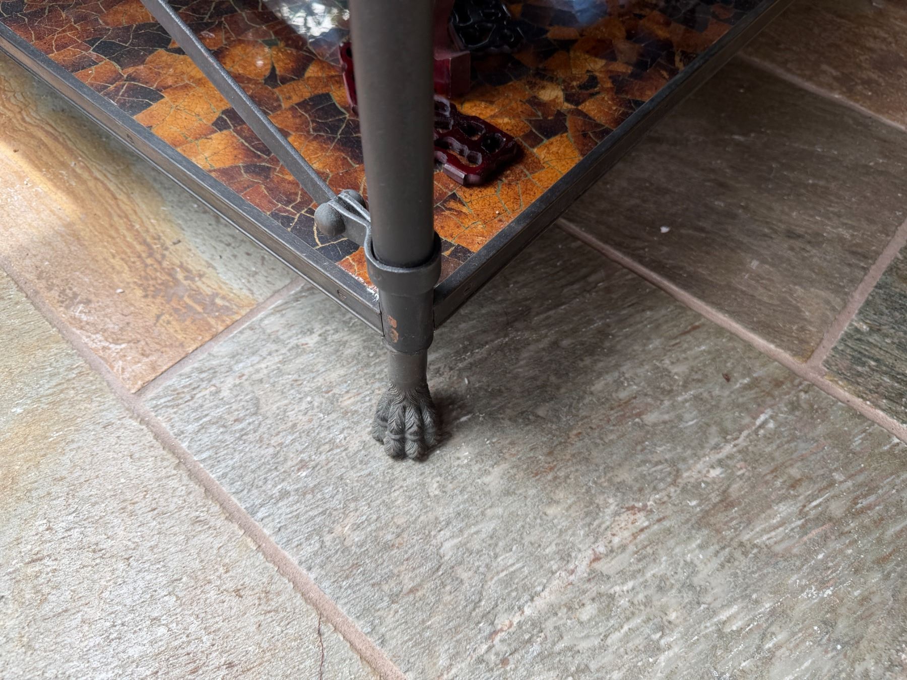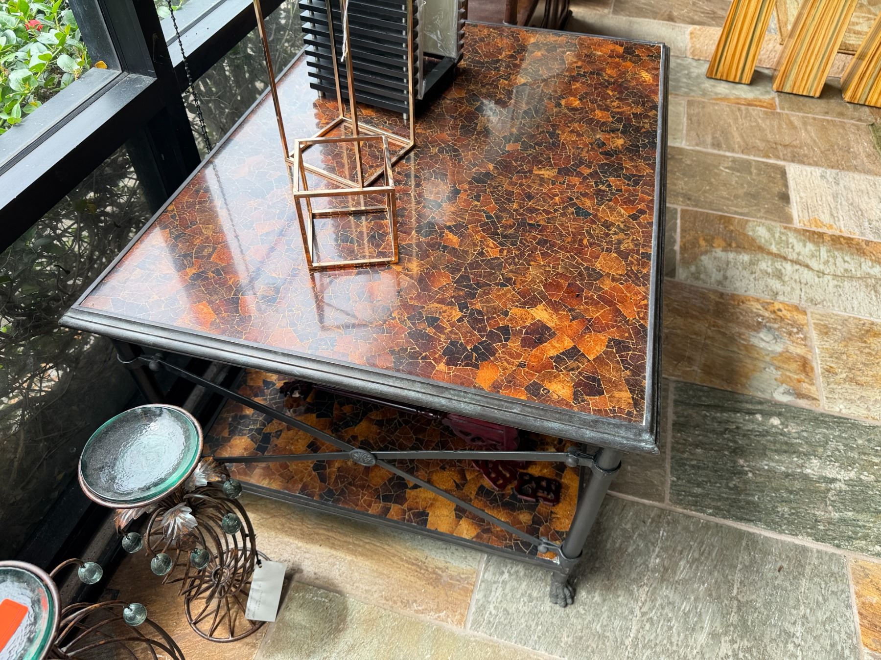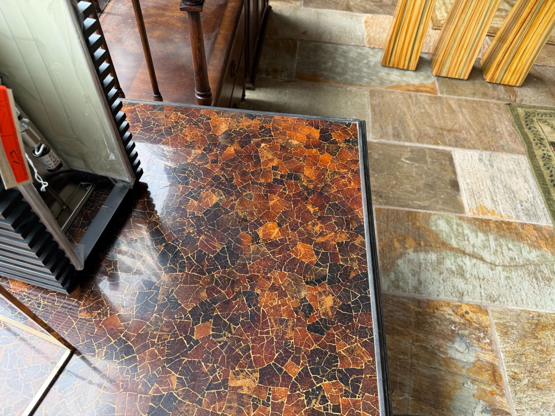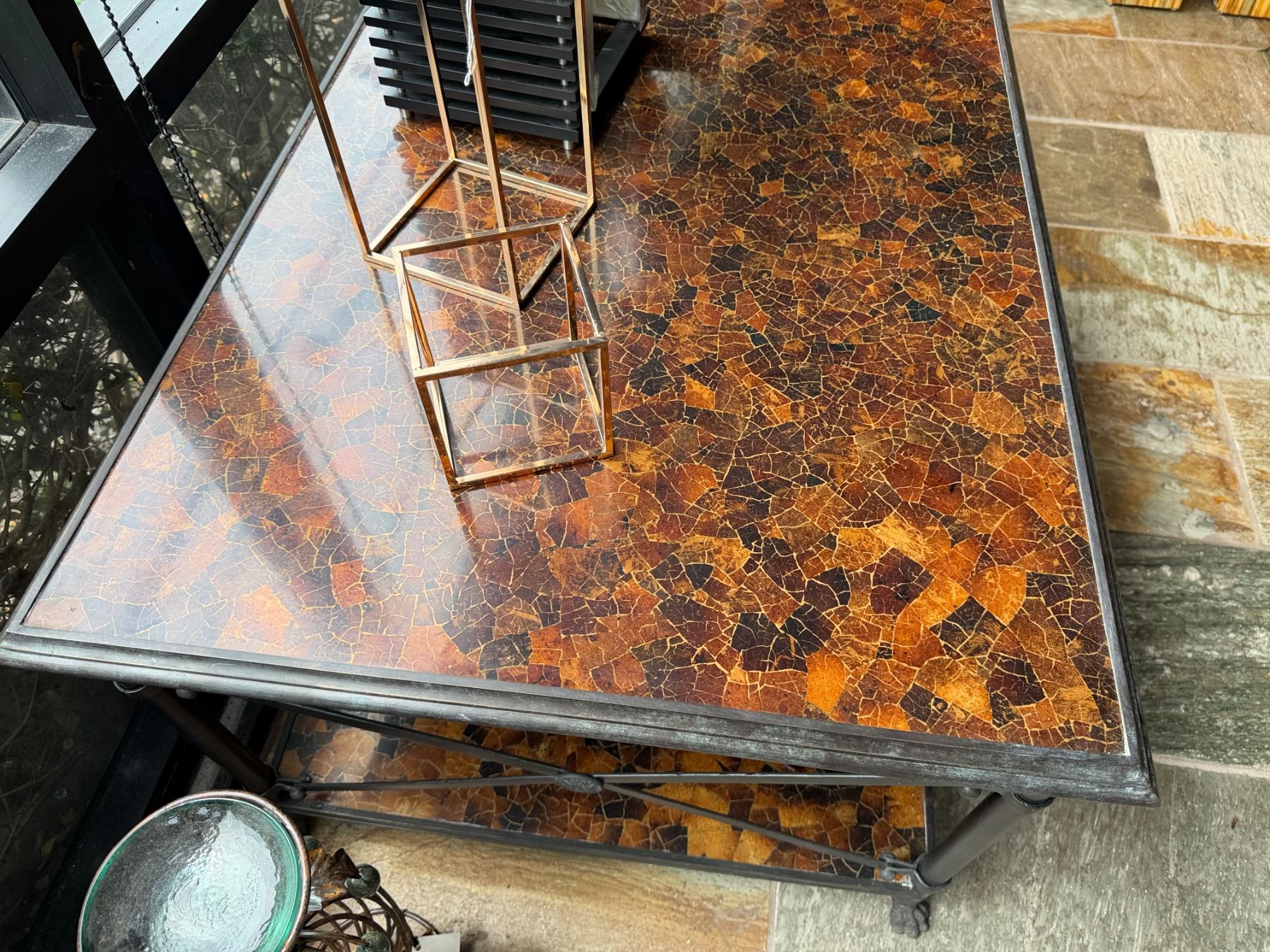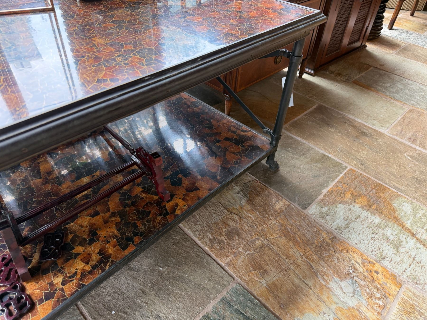 Theodore Alexander Coffee Table w/ Crackle Finish Top, Undershelf, Metal Legs & Paw Feet made in Vietnam 38" x 28" x 20"H