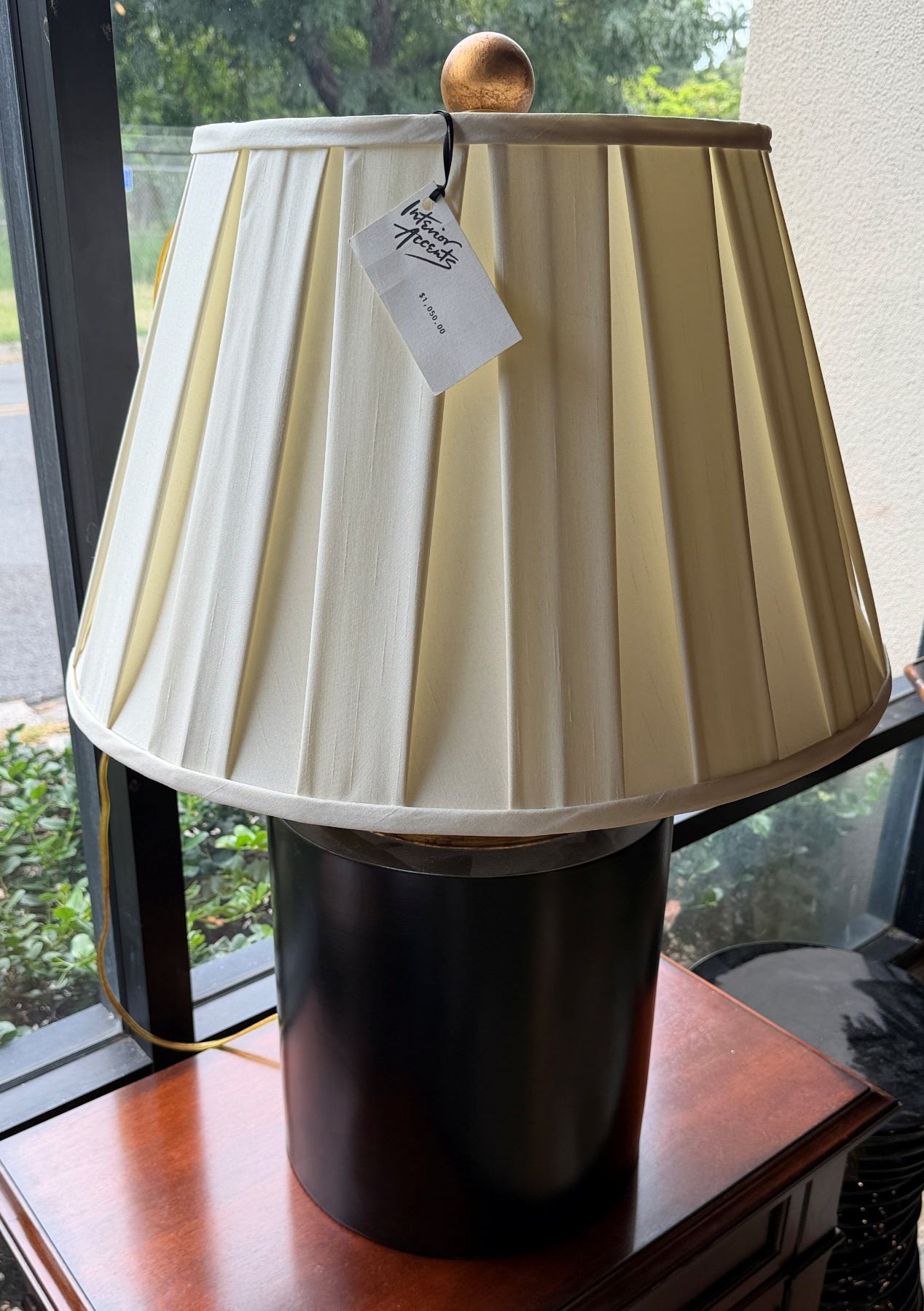 Table Lamp w/ Cylinder Base & White Shade 13.5" Dia, 30"H