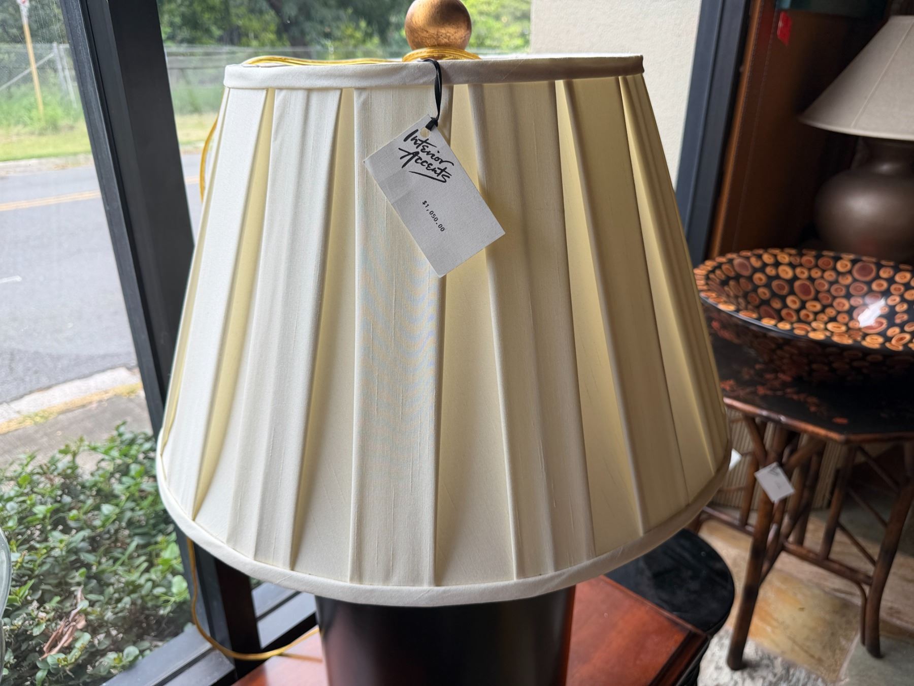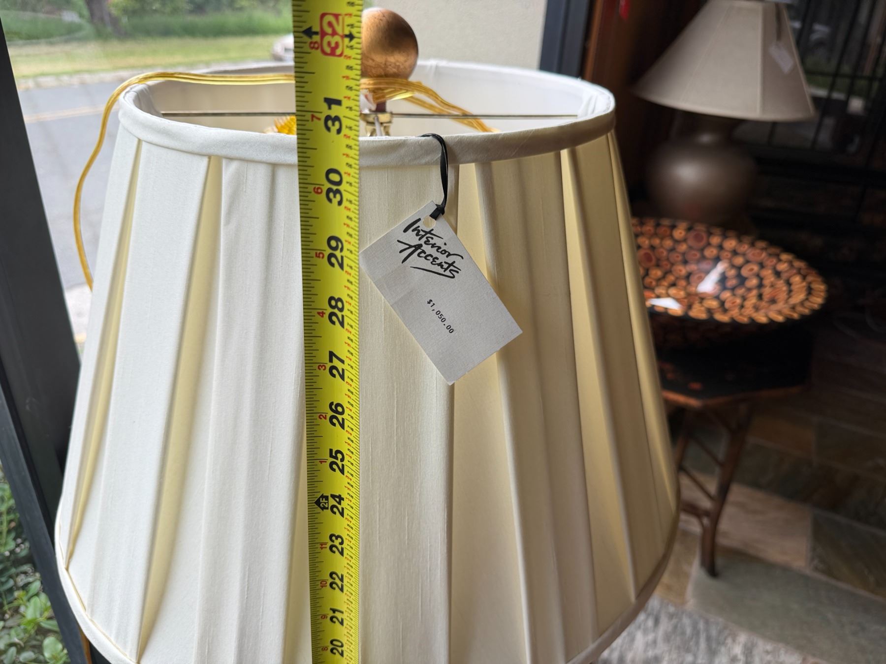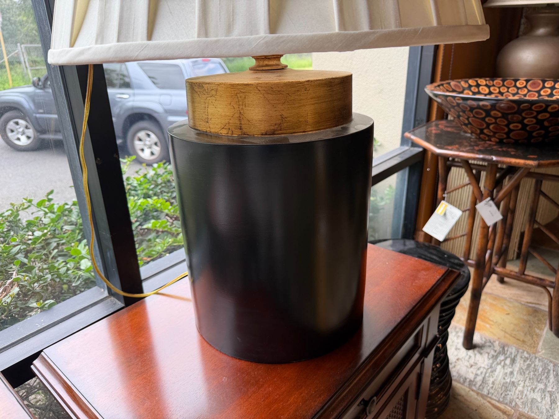 Lot 17 Table Lamp w/ Cylinder Base & White Shade 13.5" Dia, 30"H