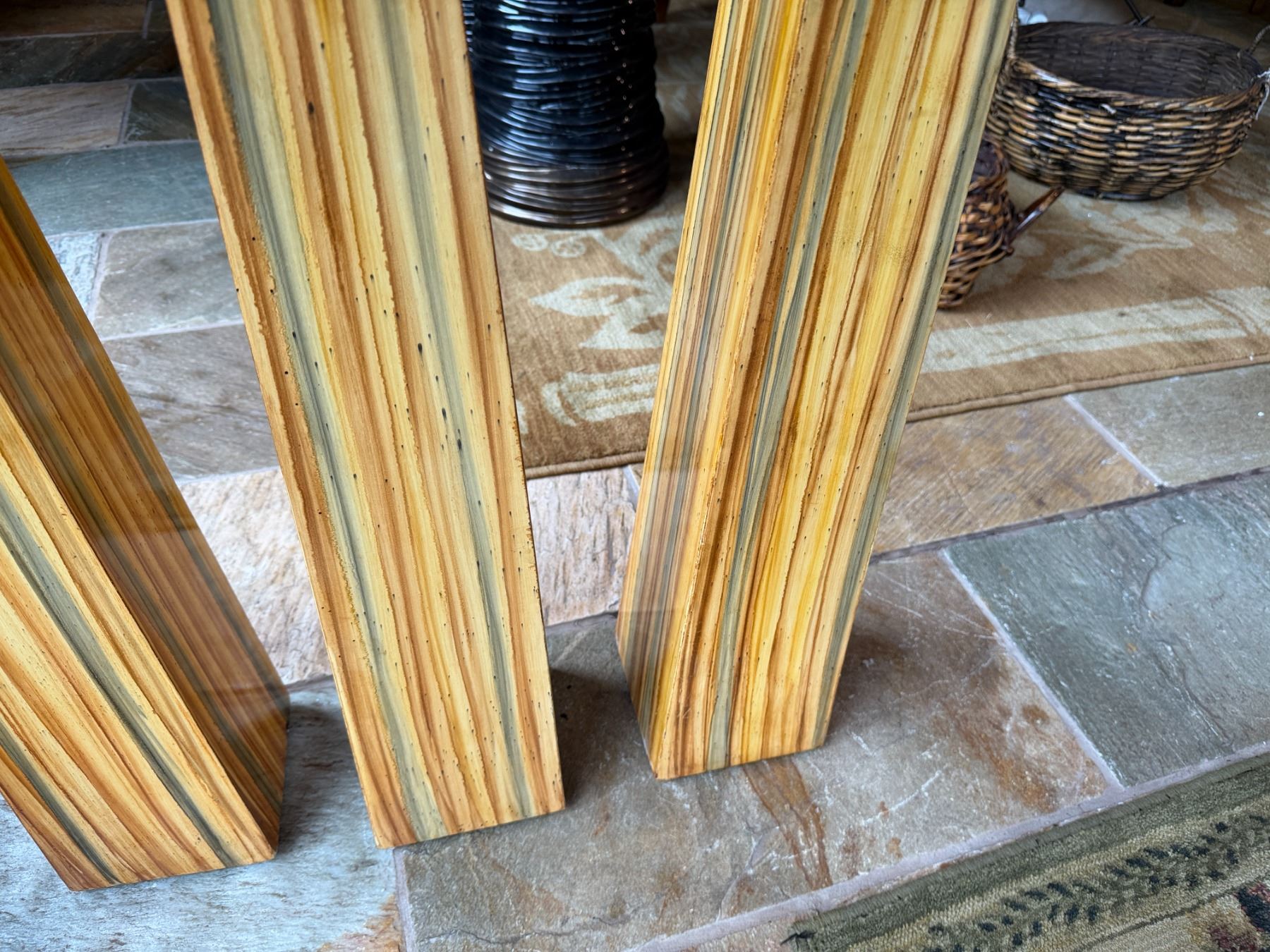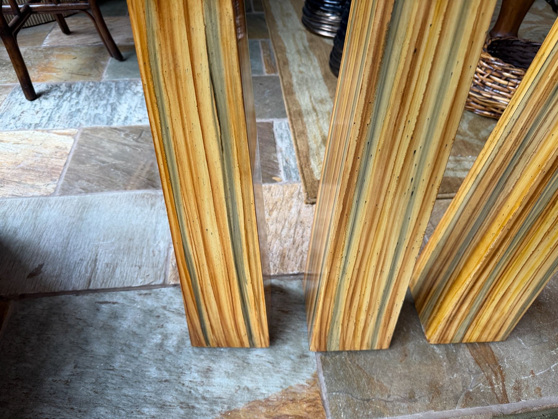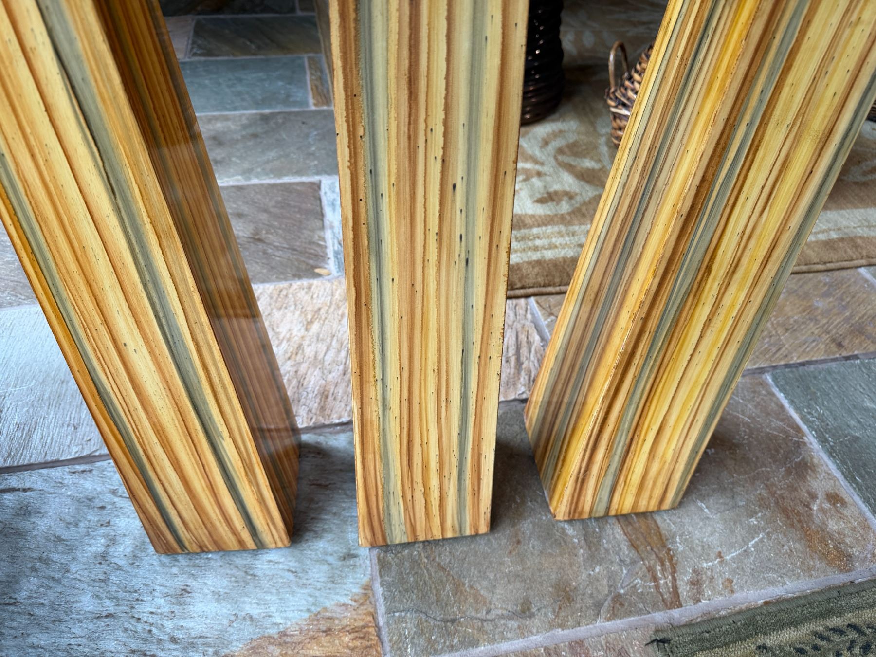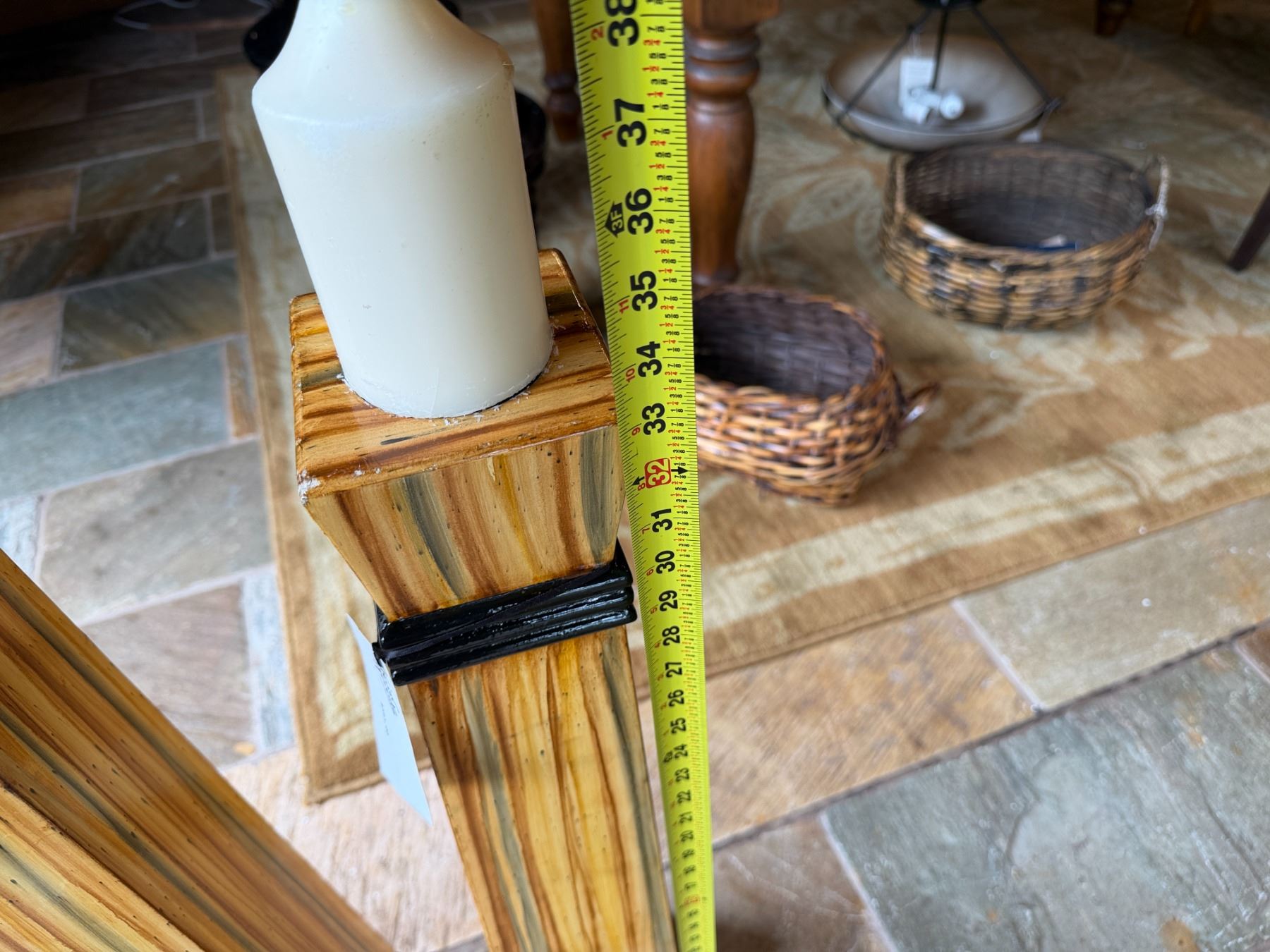 Lot 18 Qty 3 Floor Pillar Candle Holders w/ Striped Design & 3 White Candles, Misc Sizes