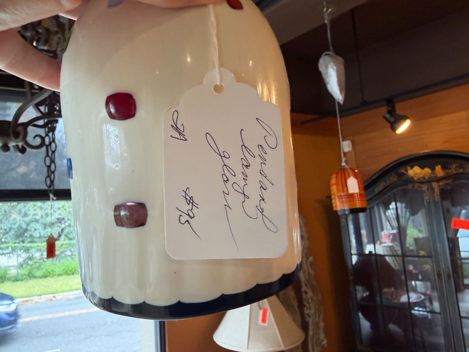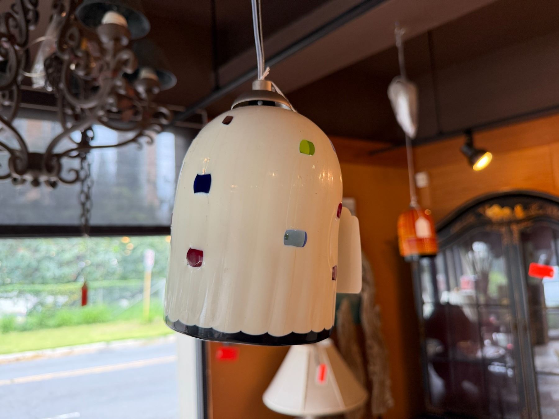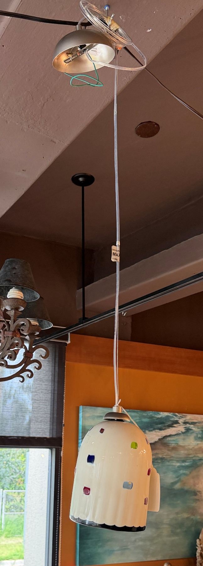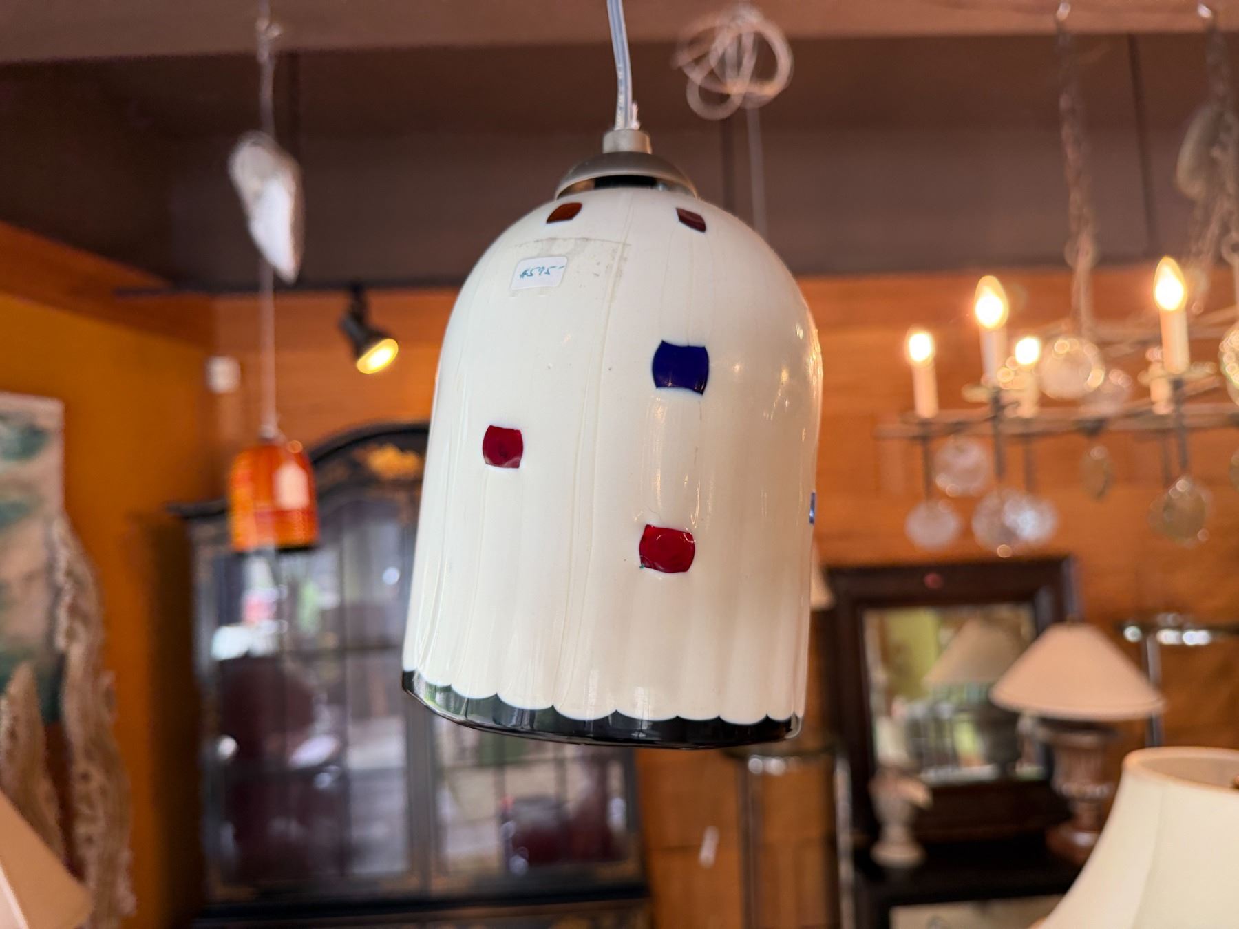 Lot 27 Hanging White & Blue Glass Pendant Lamp made in Italy 5.5"L