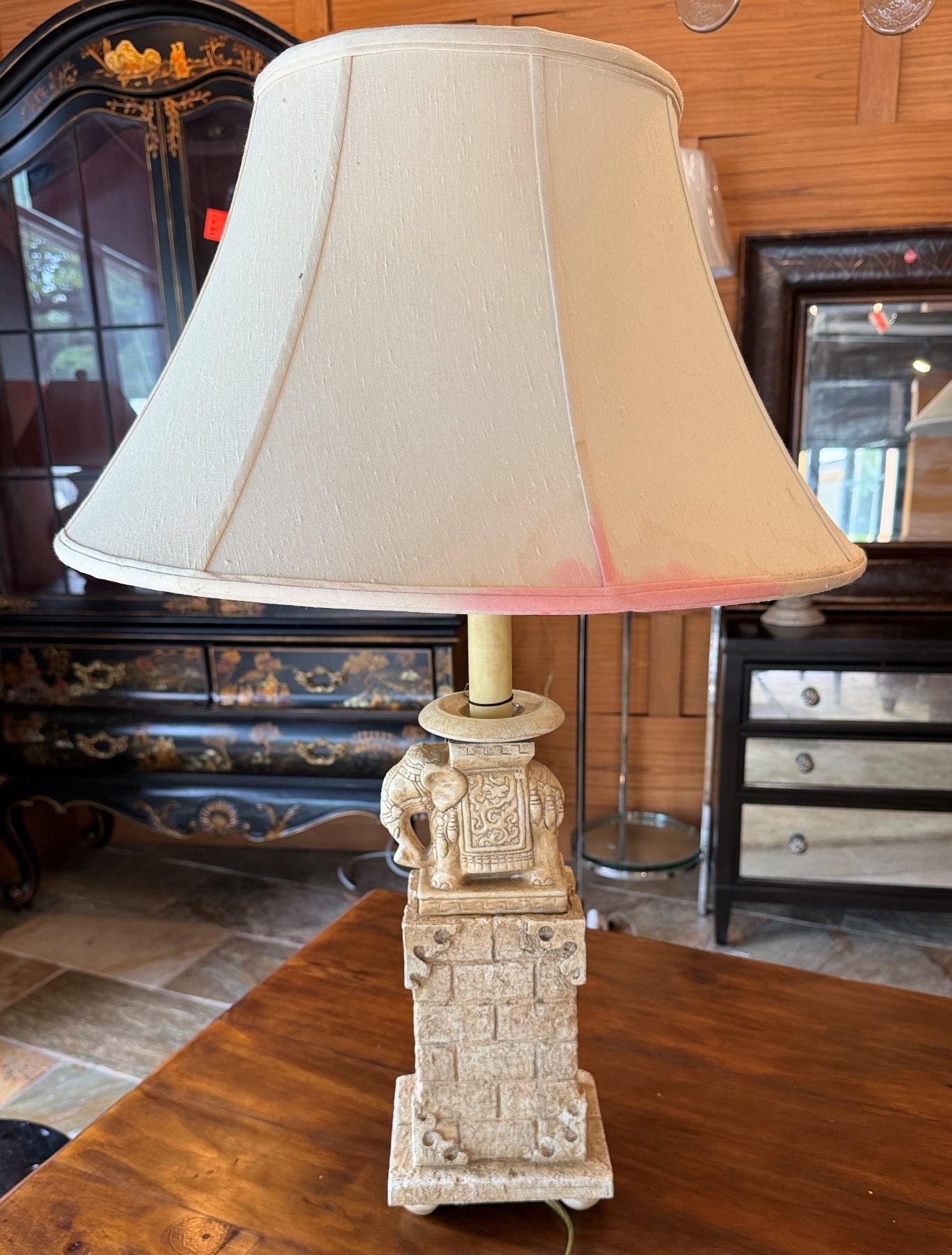 Lot 35 Table Lamp w/ Elephant Motif Vase & Off-White Shade (stained) 32"H