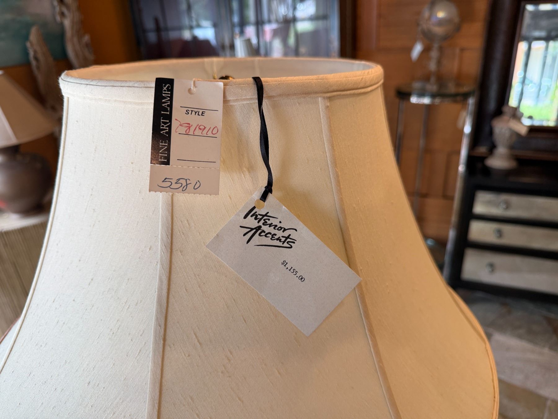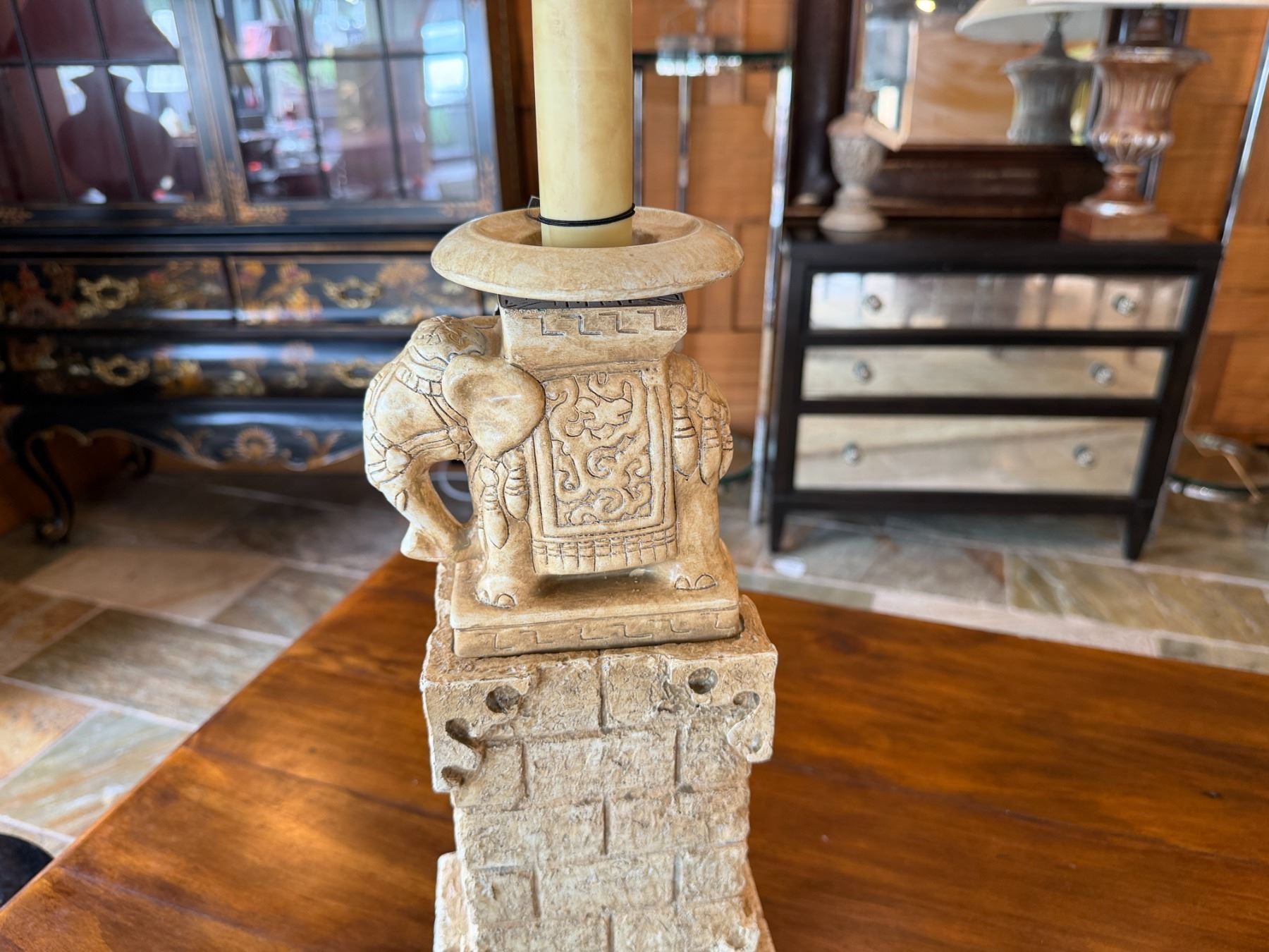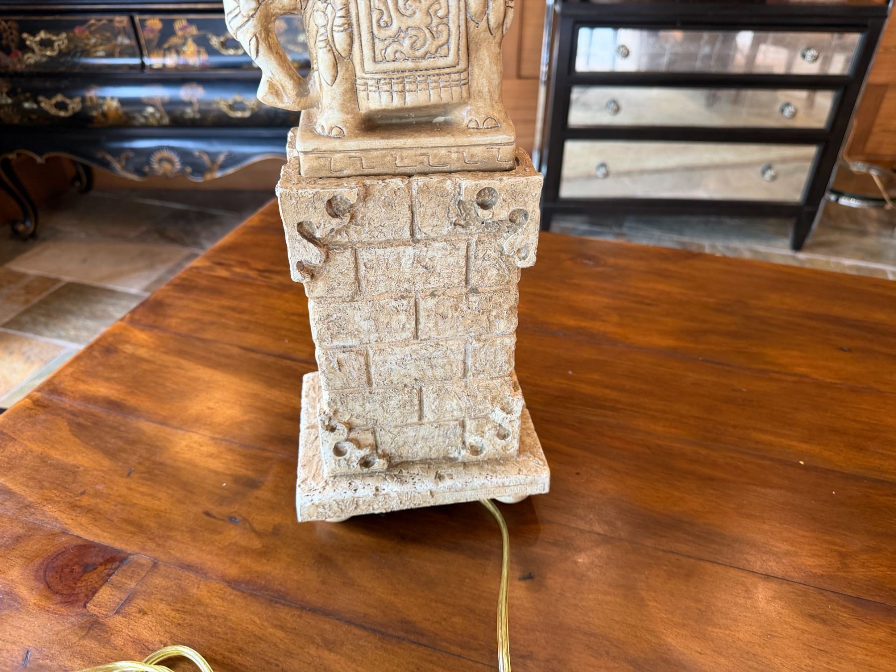 Table Lamp w/ Elephant Motif Vase & Off-White Shade (stained) 32"H
