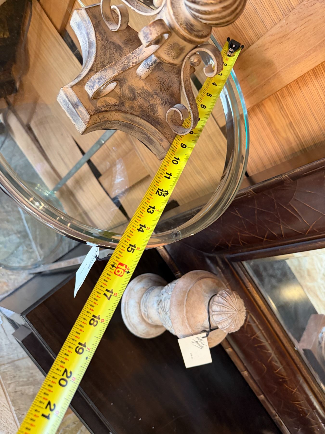 Lot 41 Swaim Round Stainless Steel Table w/ Glass Top & Undershelf 16" Dia, 48"H
