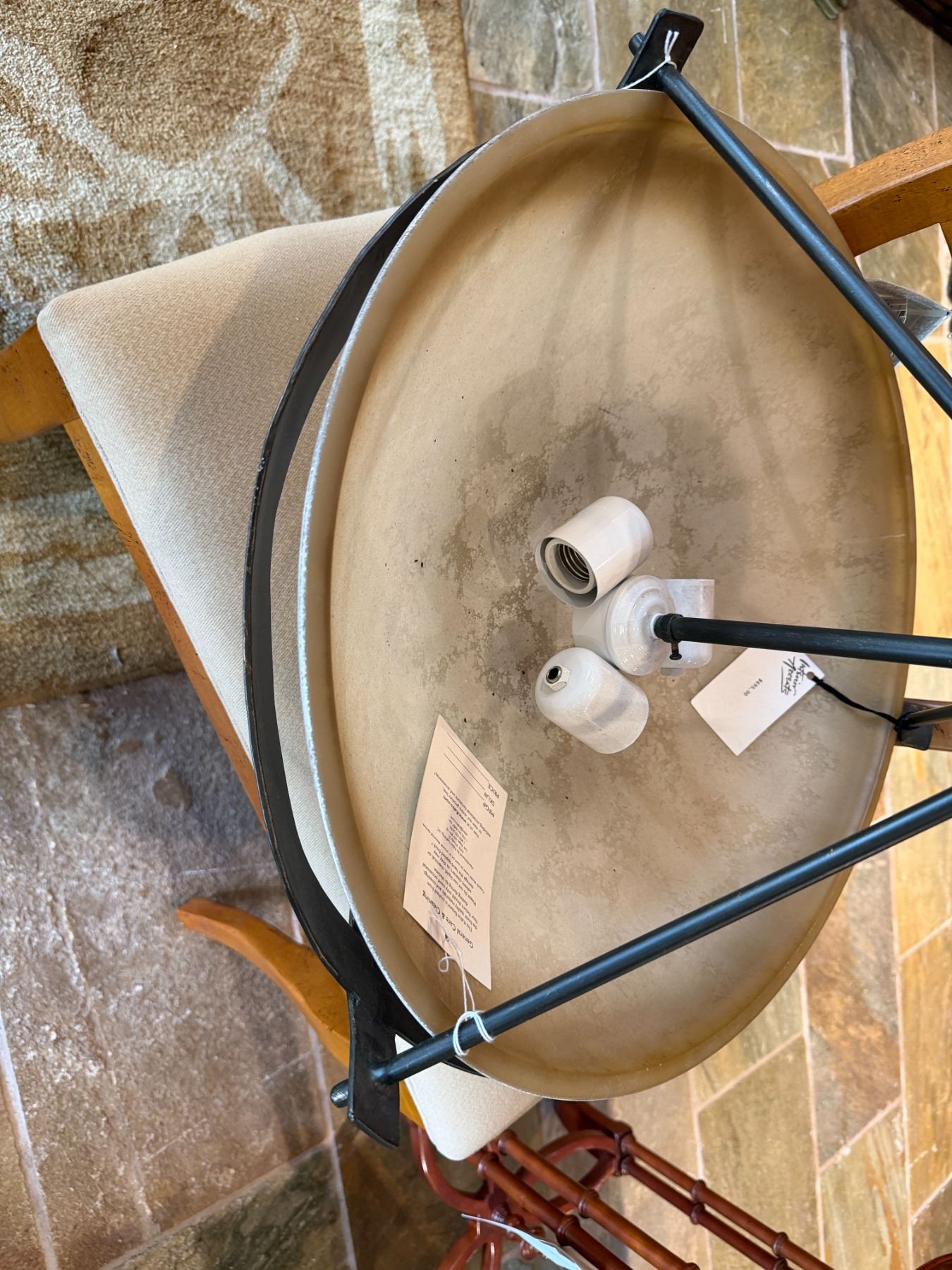 Lot 46 Kalco Wrought Iron Hanging Lamp w/ Dome