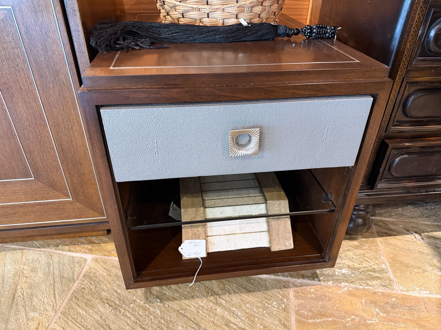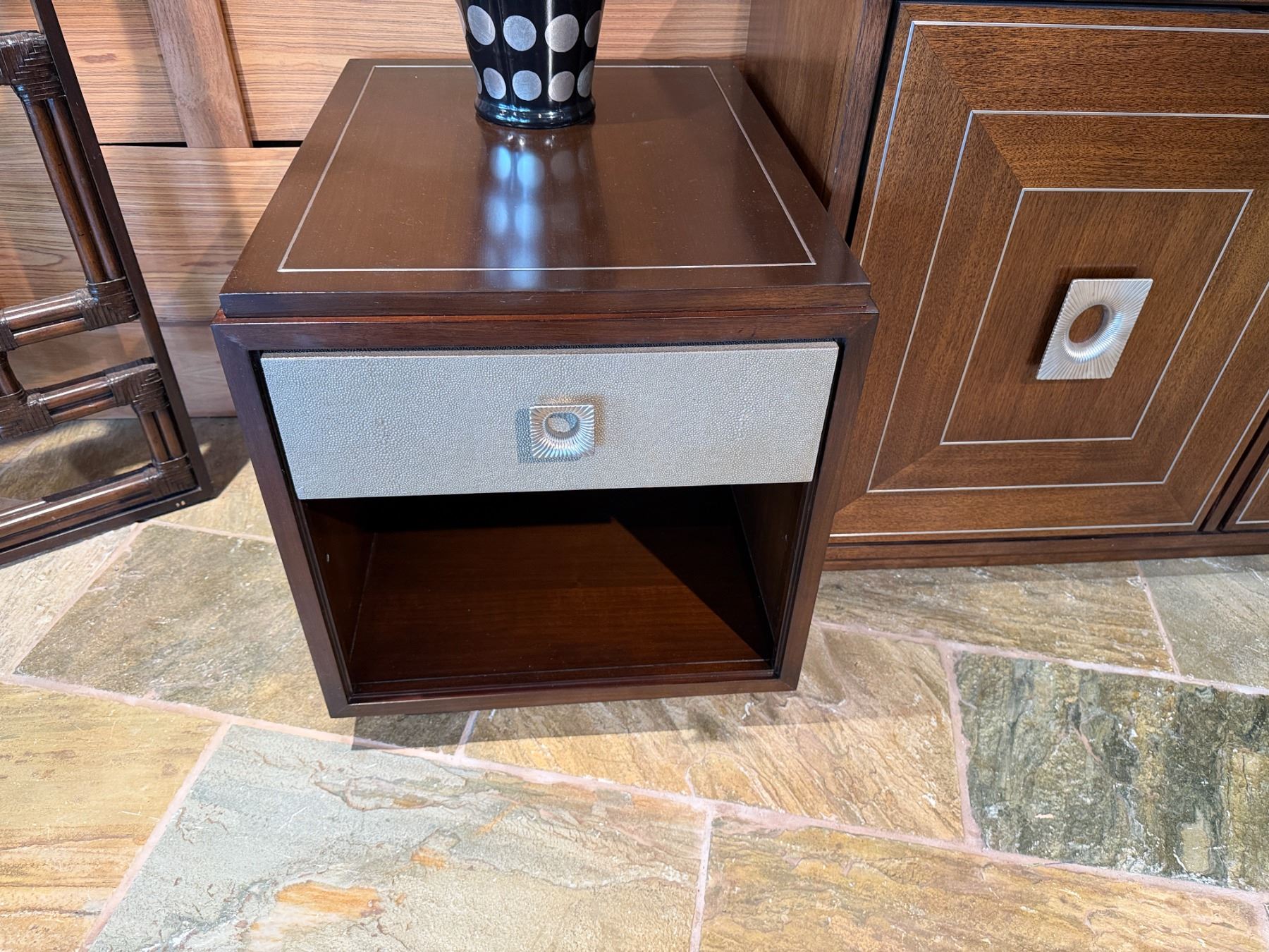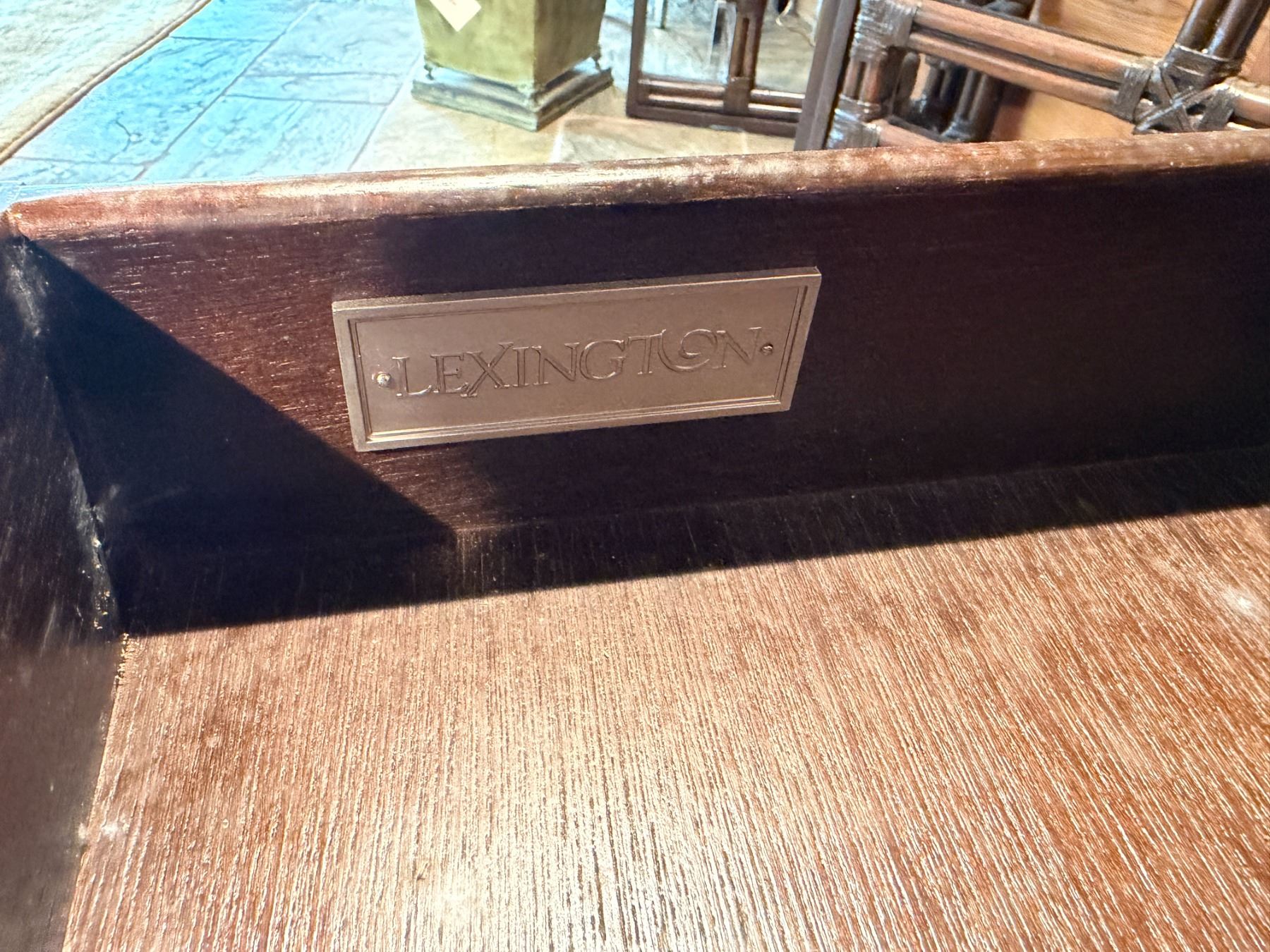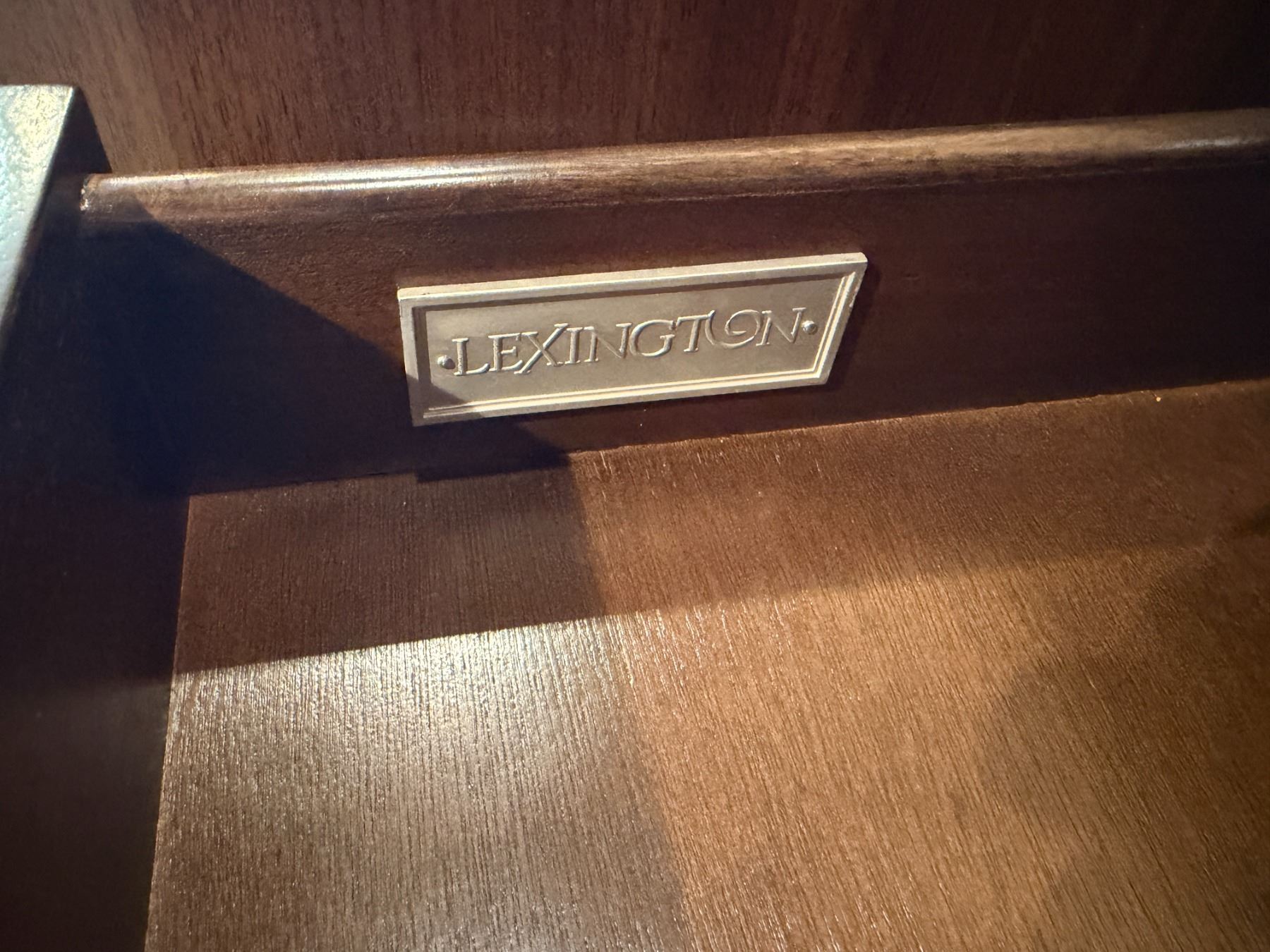 Lot 50 Lexington Wooden 2-Drawer Cabinet w/ Inside Shelving & 2 Side Tables, Misc Sizes