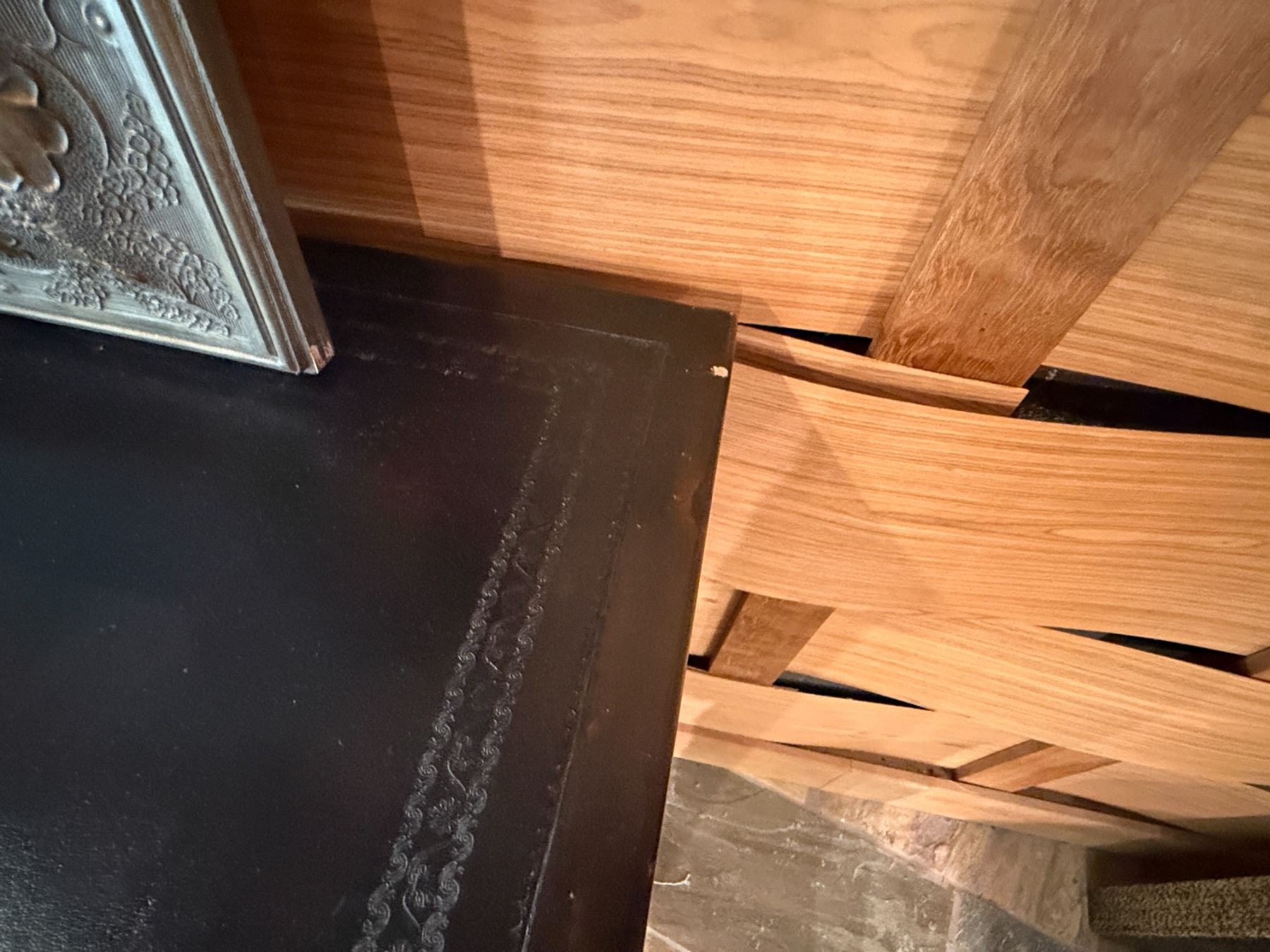 Maitland-Smith Carved Wooden Chest of Drawers w/ Leather Insets 72" x 23" x 44"H