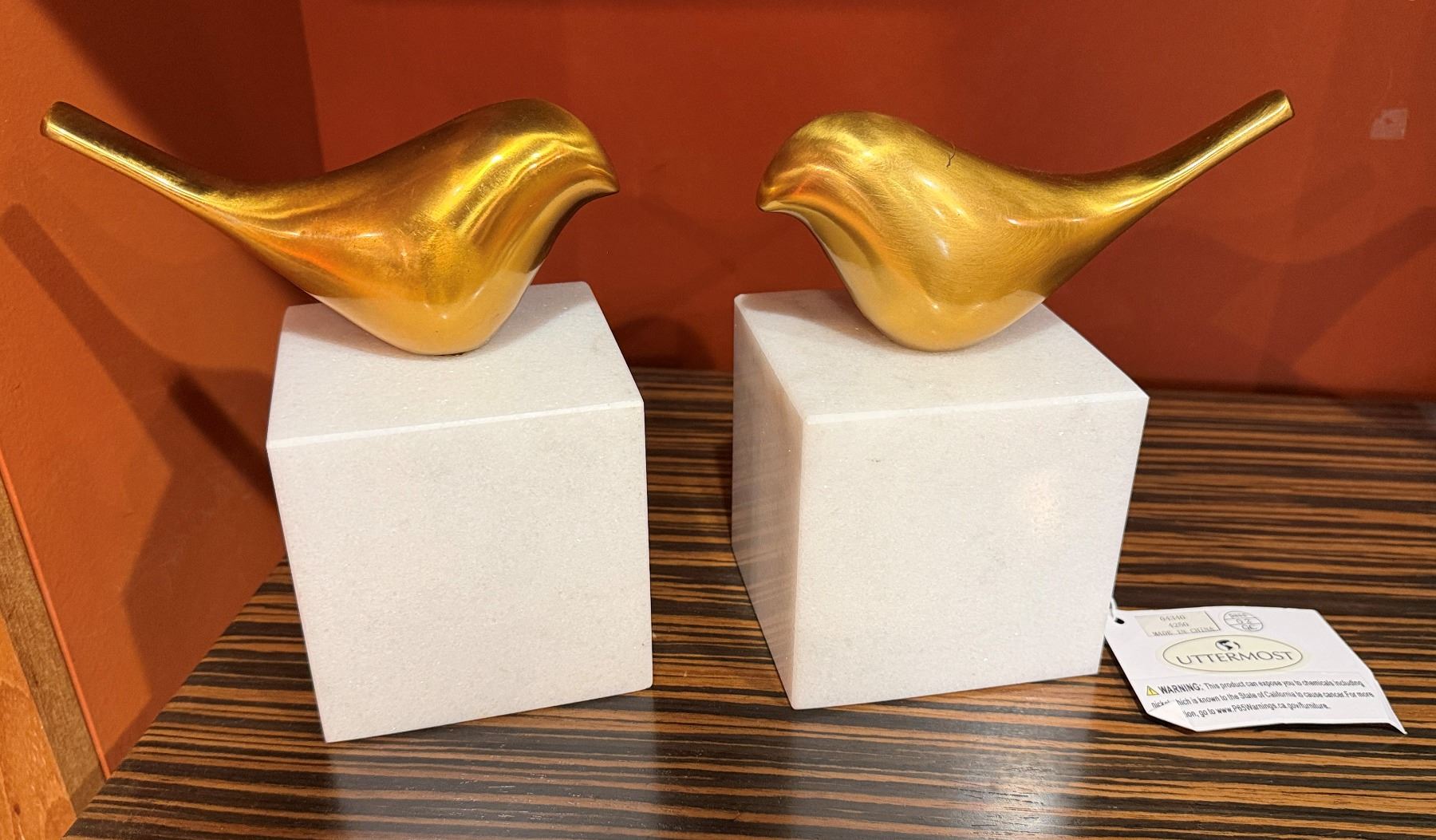 Qty 2 Uttermost Songbirds Brass Sculptures on Stone Base 7.5"H (heavy) - can be wall mounted