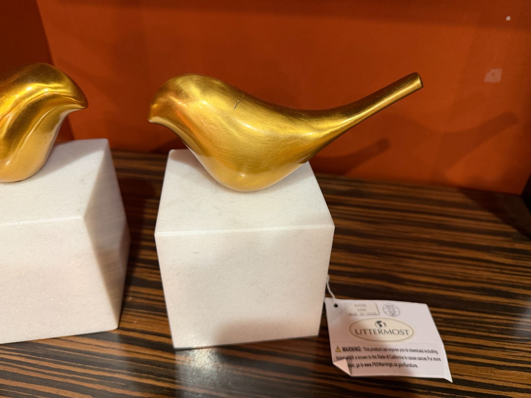 Lot 83 Qty 2 Uttermost Songbirds Brass Sculptures on Stone Base 7.5"H (heavy)